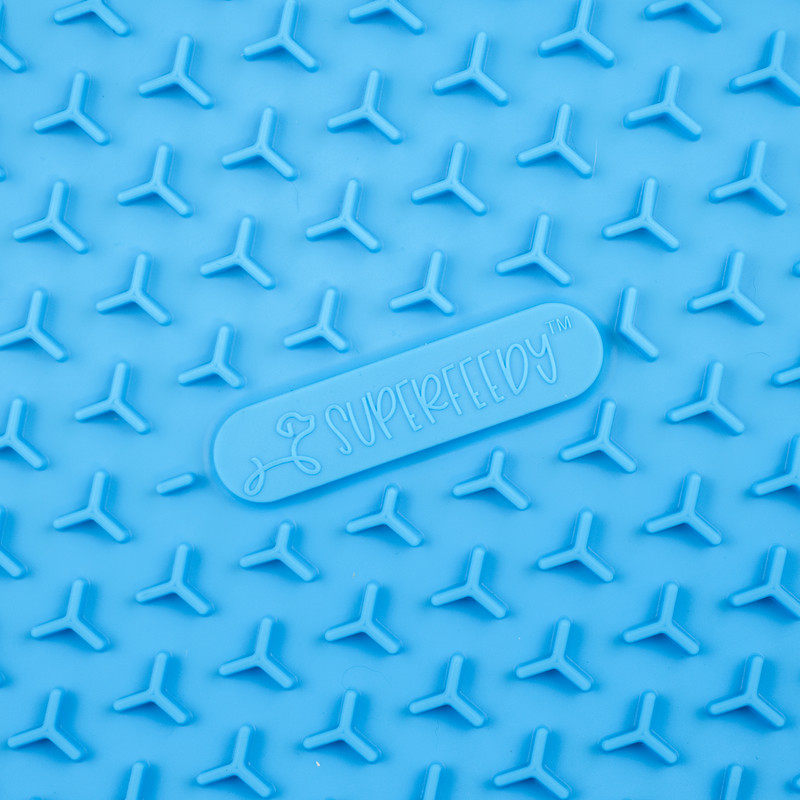 Made from thick, food-grade silicone that won’t curl or tear, it’s built to last through enthusiastic licking and regular dishwasher cycles. Use it as a standalone enrichment tool, a calming aid during bath time, or as a lid for your Super Feedy Slow Feeder Bowl to prep meals ahead or take food on the go. Simple, smart, and stress-reducing — this mat does it all.