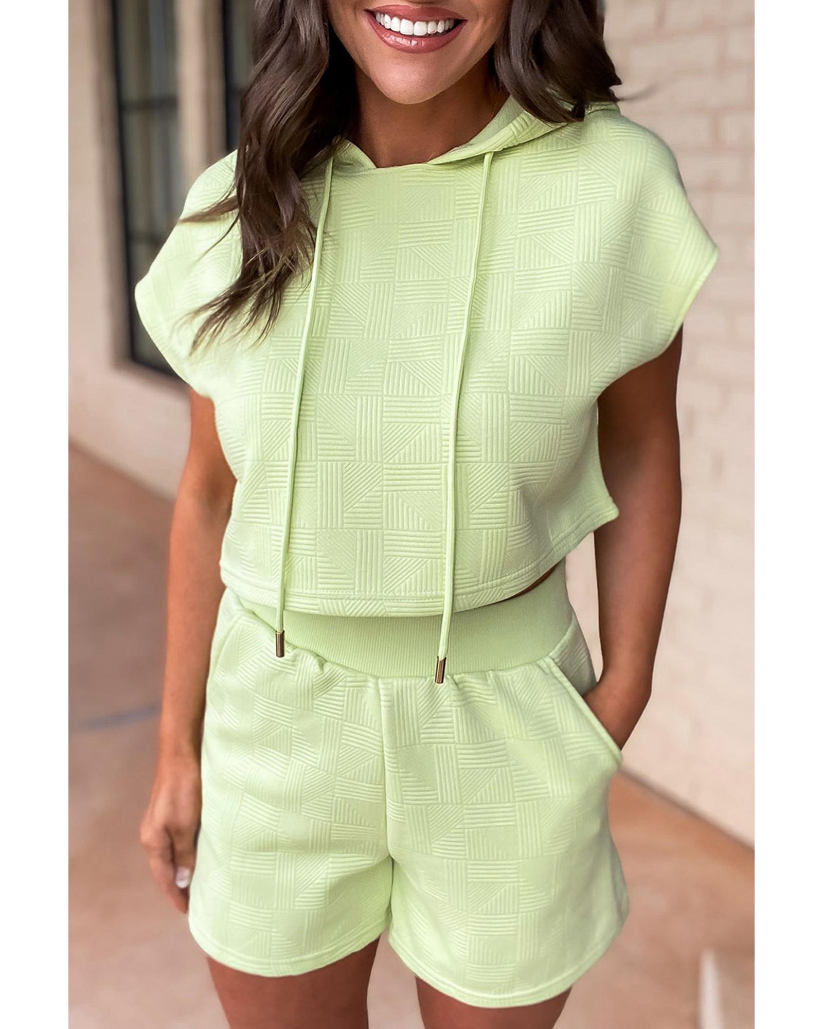 Meadow Mist Green Textured Cropped Hoodie and Shorts Set – L