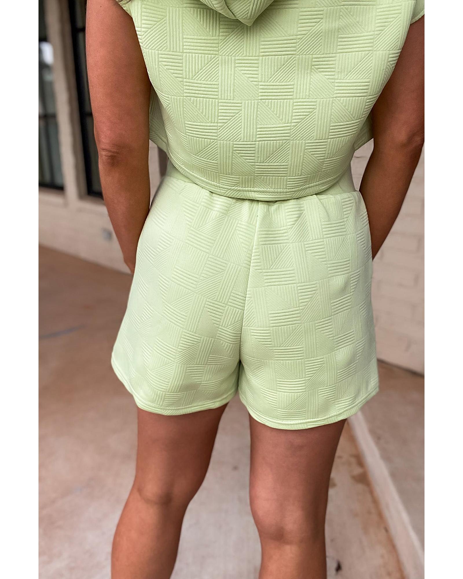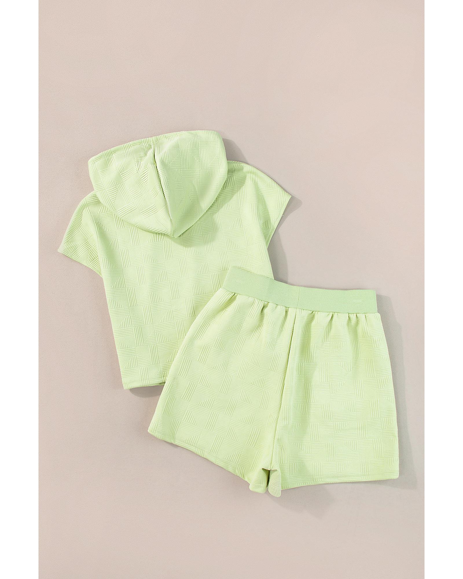 Meadow Mist Green Textured Cropped Hoodie and Shorts Set – XL