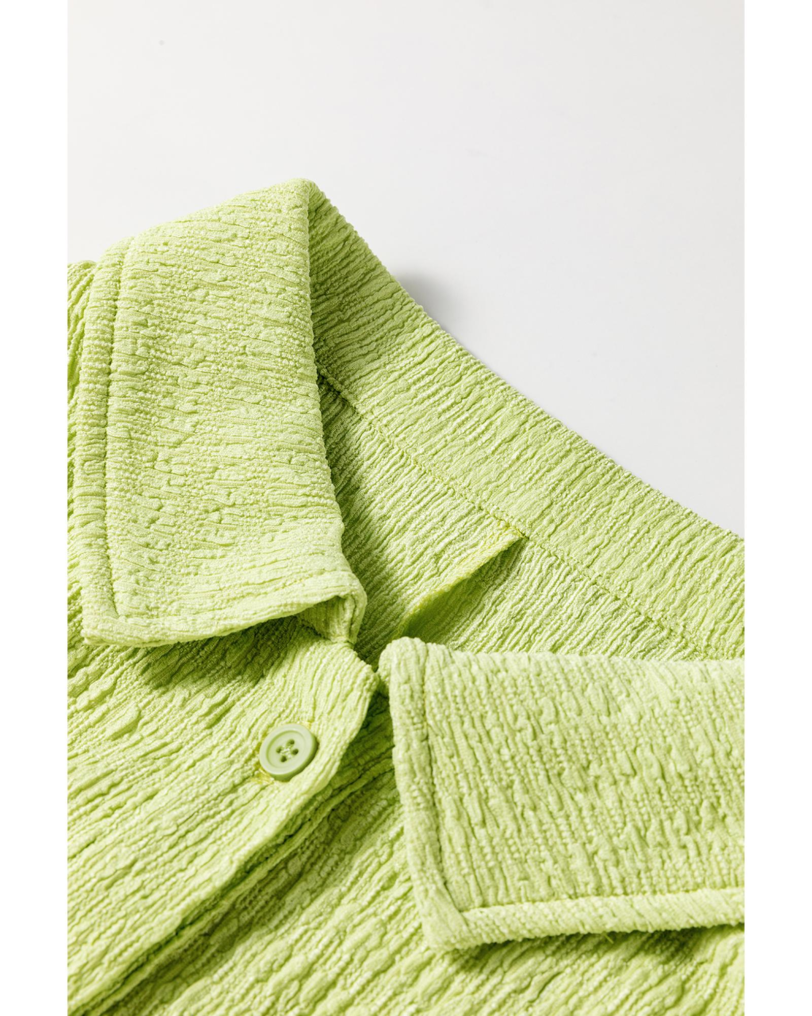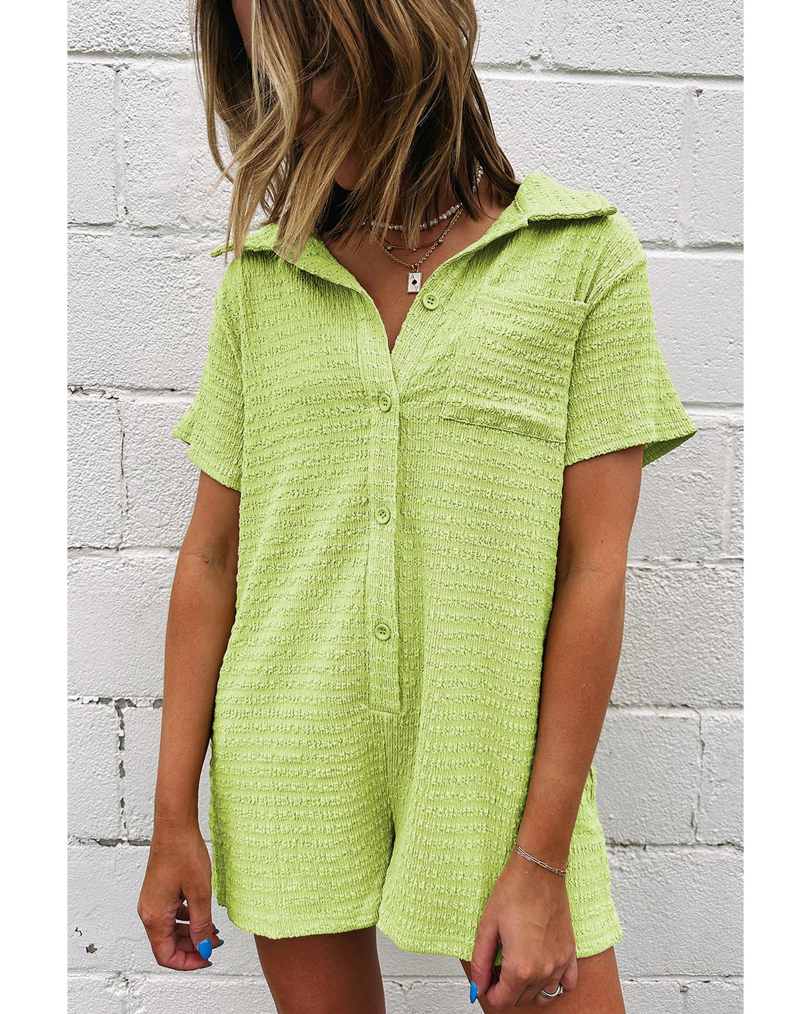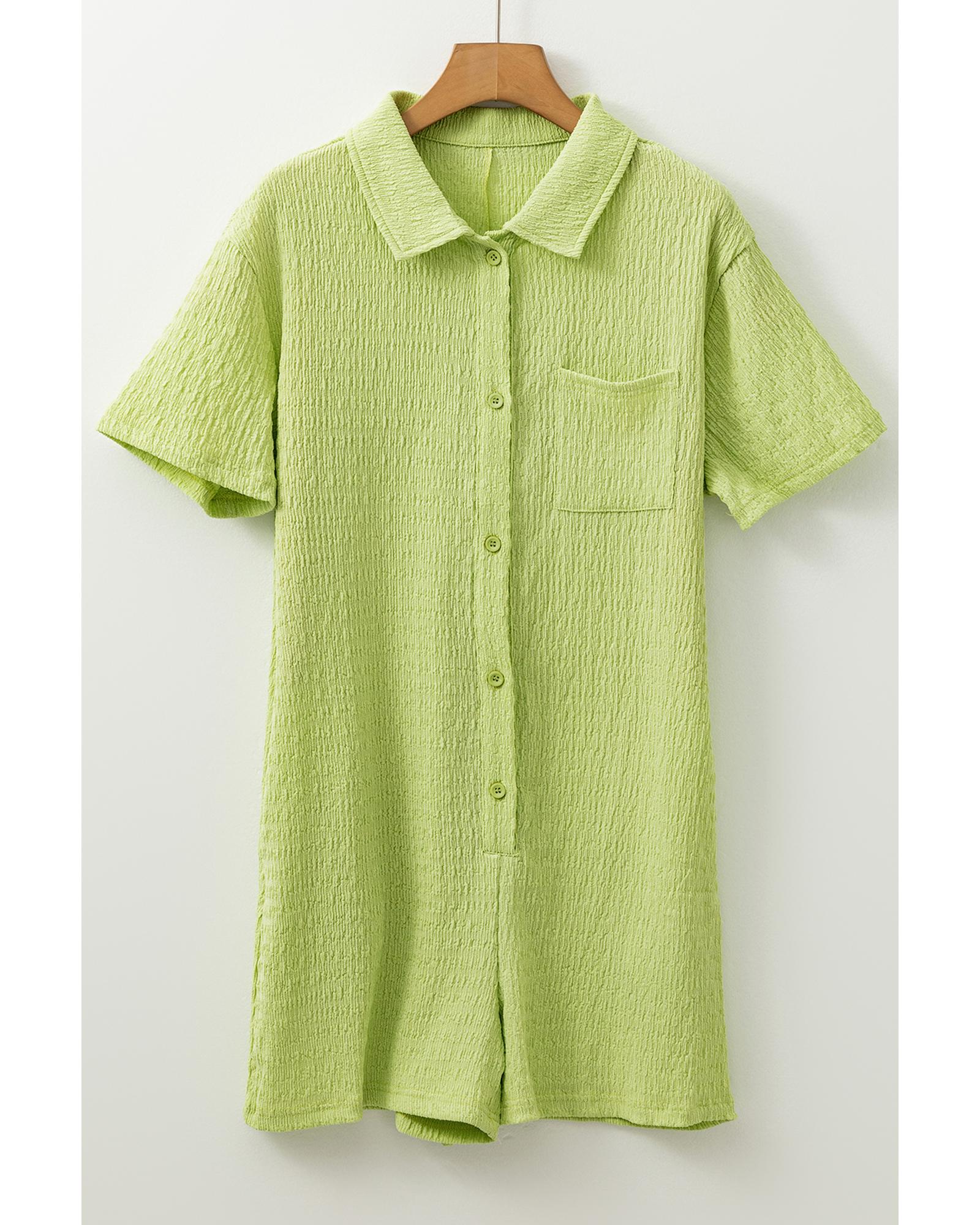 Meadow Mist Green Textured Short Sleeve Patched Pocket Buttoned Shirt Romper - M Original price was: $64.99.Current price is: $34.99.