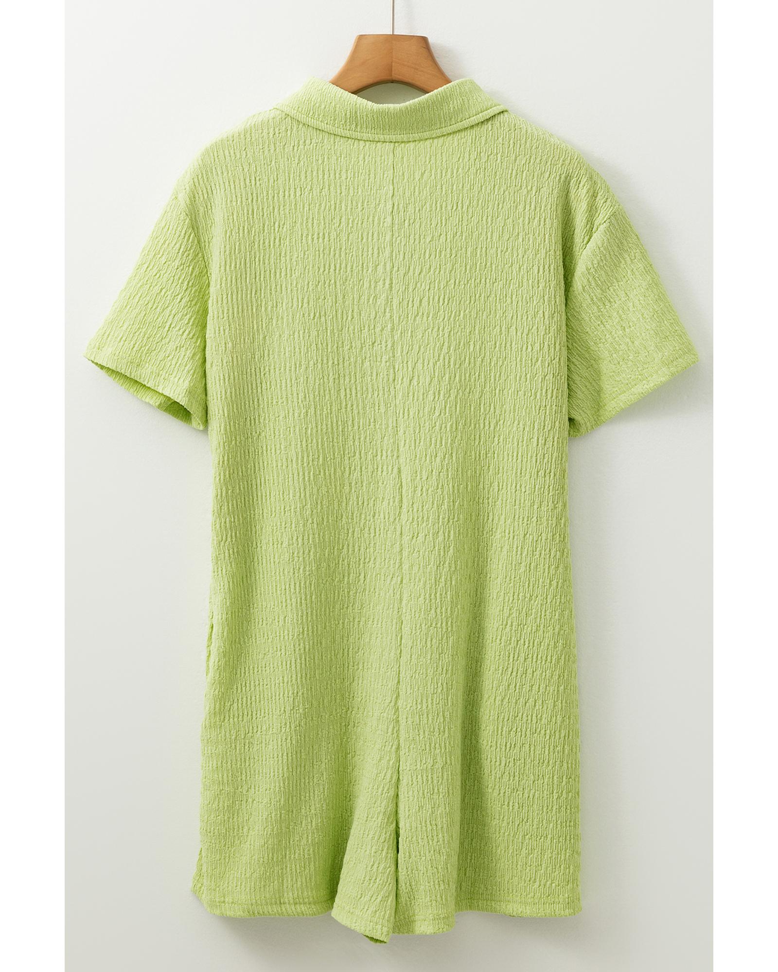 Meadow Mist Green Textured Short Sleeve Patched Pocket Buttoned Shirt Romper - L Original price was: $64.99.Current price is: $34.99.