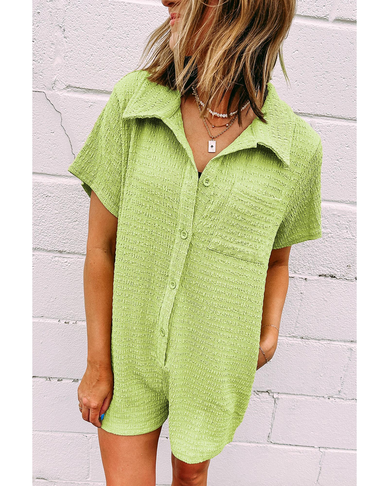 Meadow Mist Green Textured Short Sleeve Patched Pocket Buttoned Shirt Romper - XL