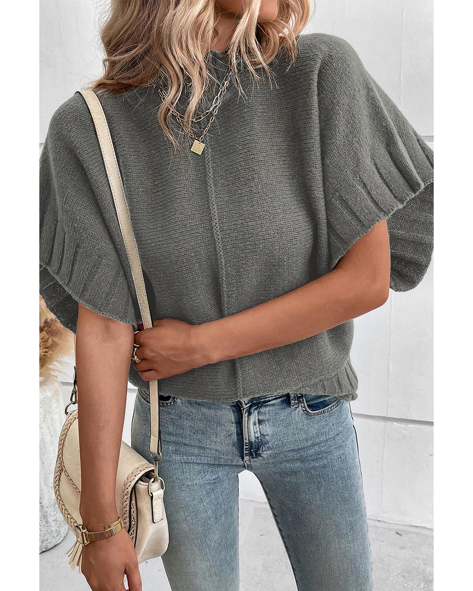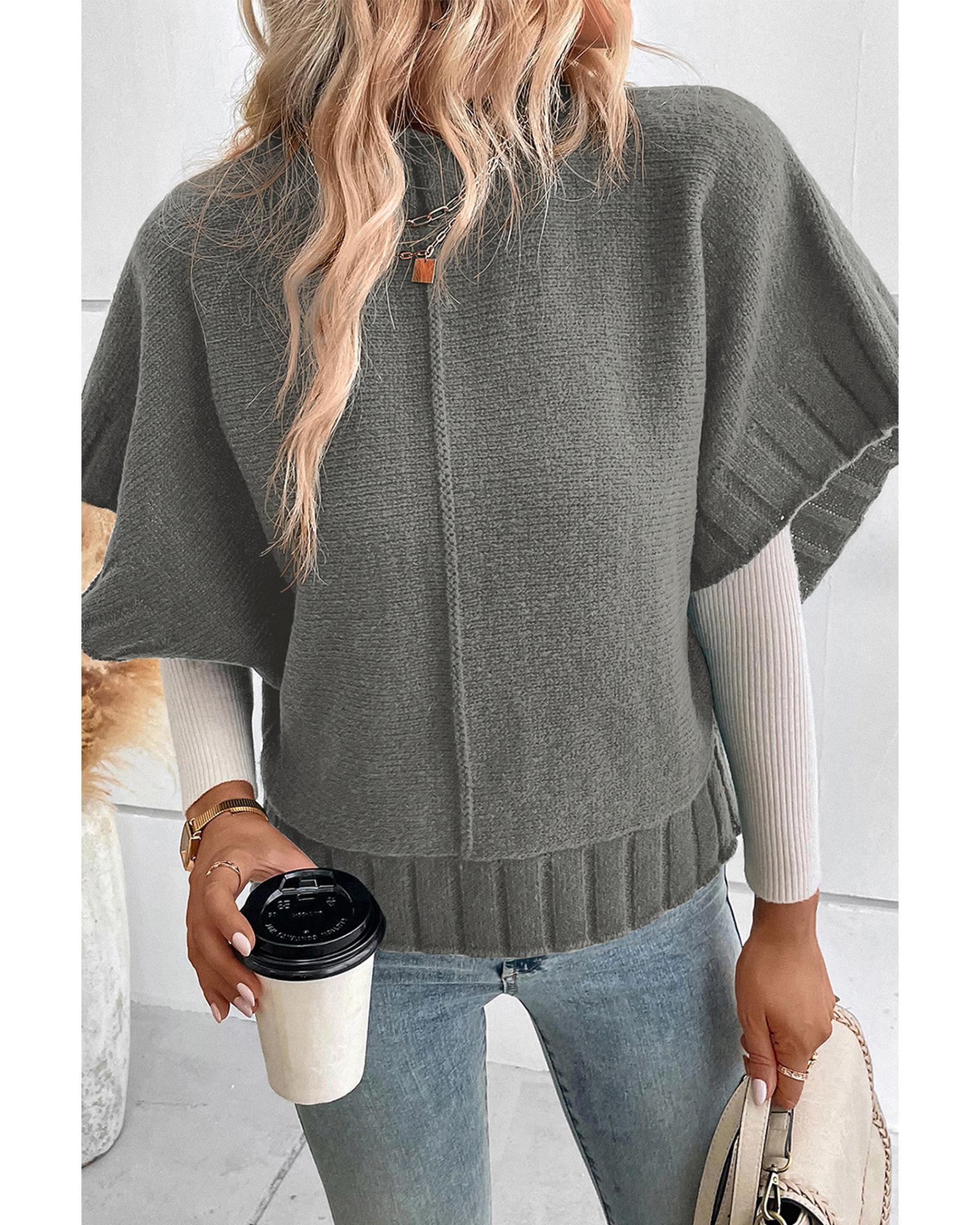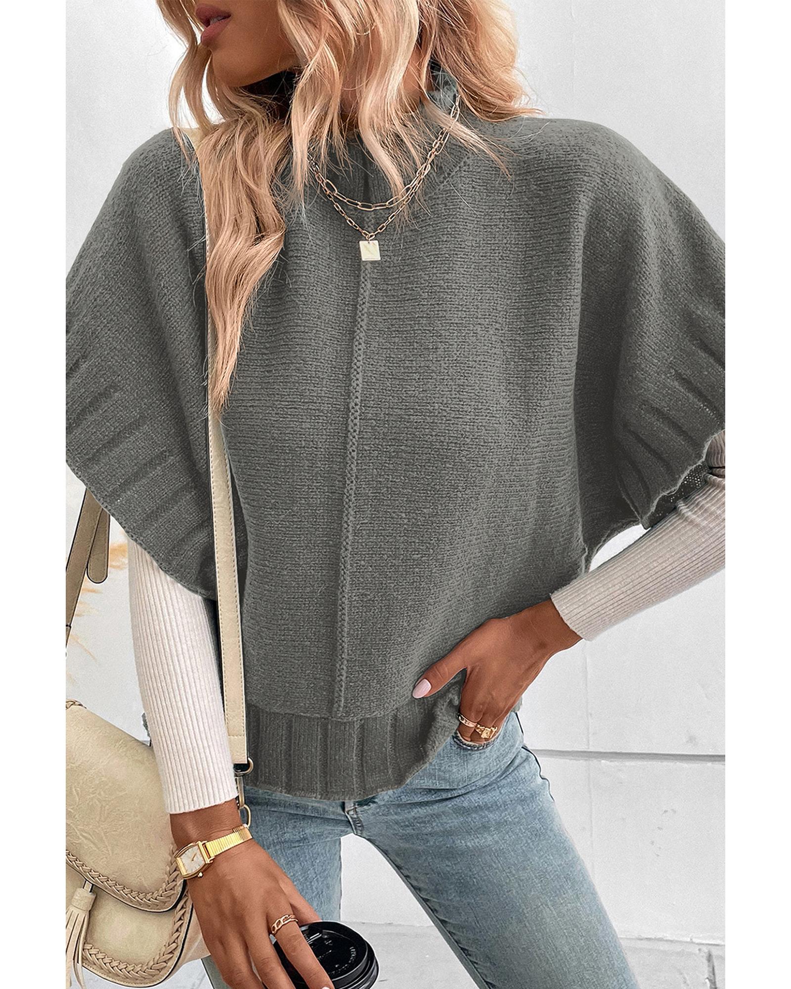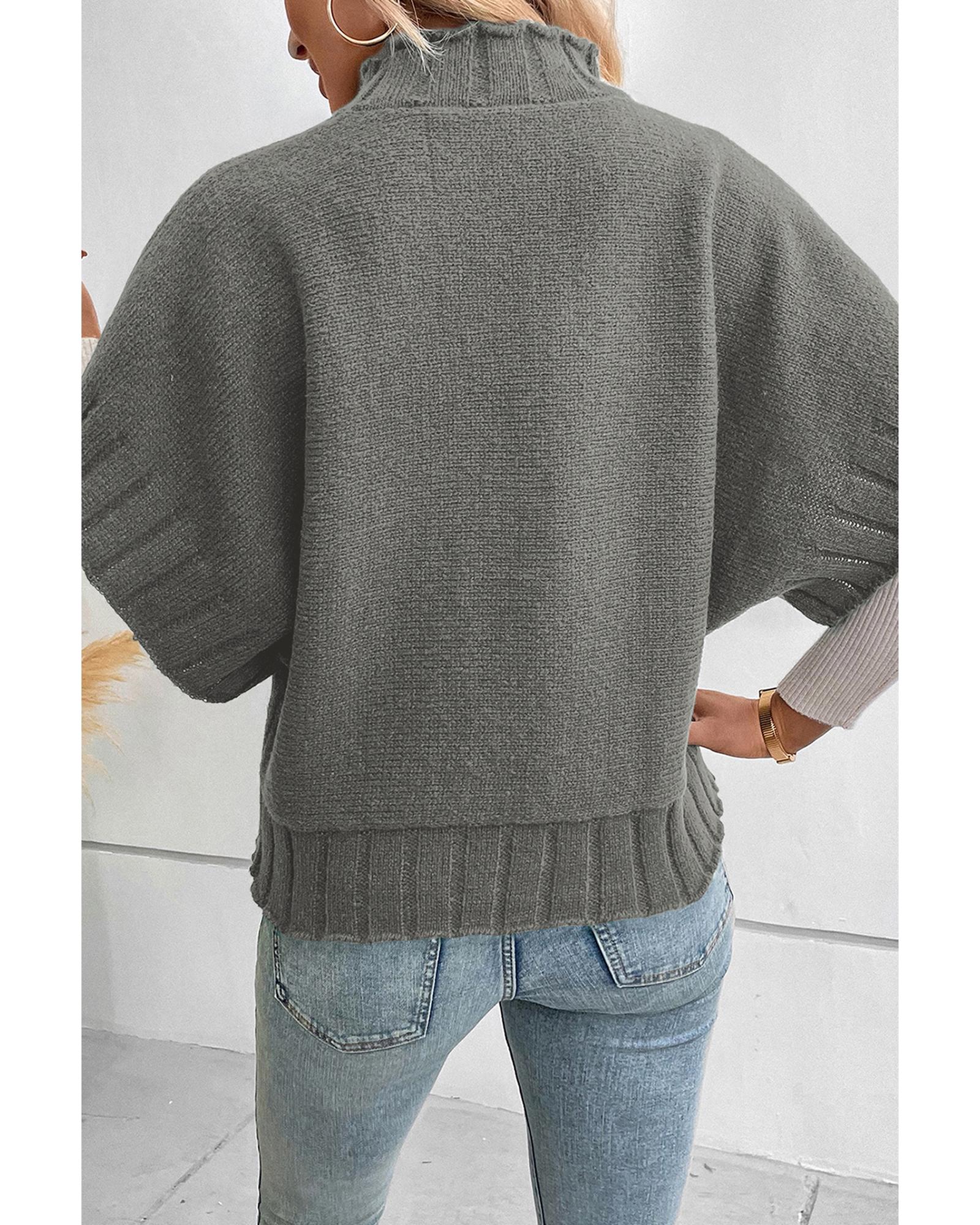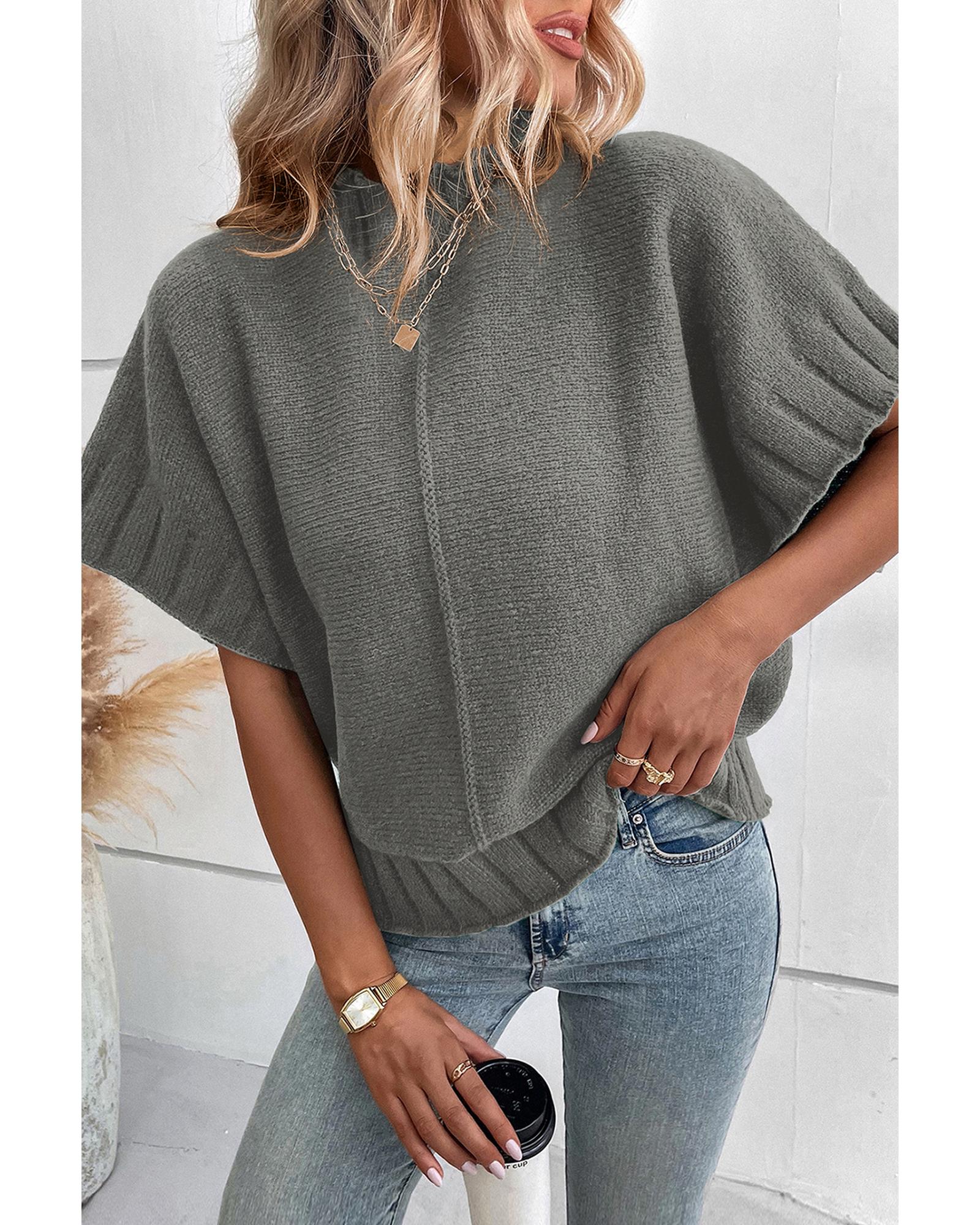 Medium Grey Mock Neck Batwing Short Sleeve Knit Sweater – XL