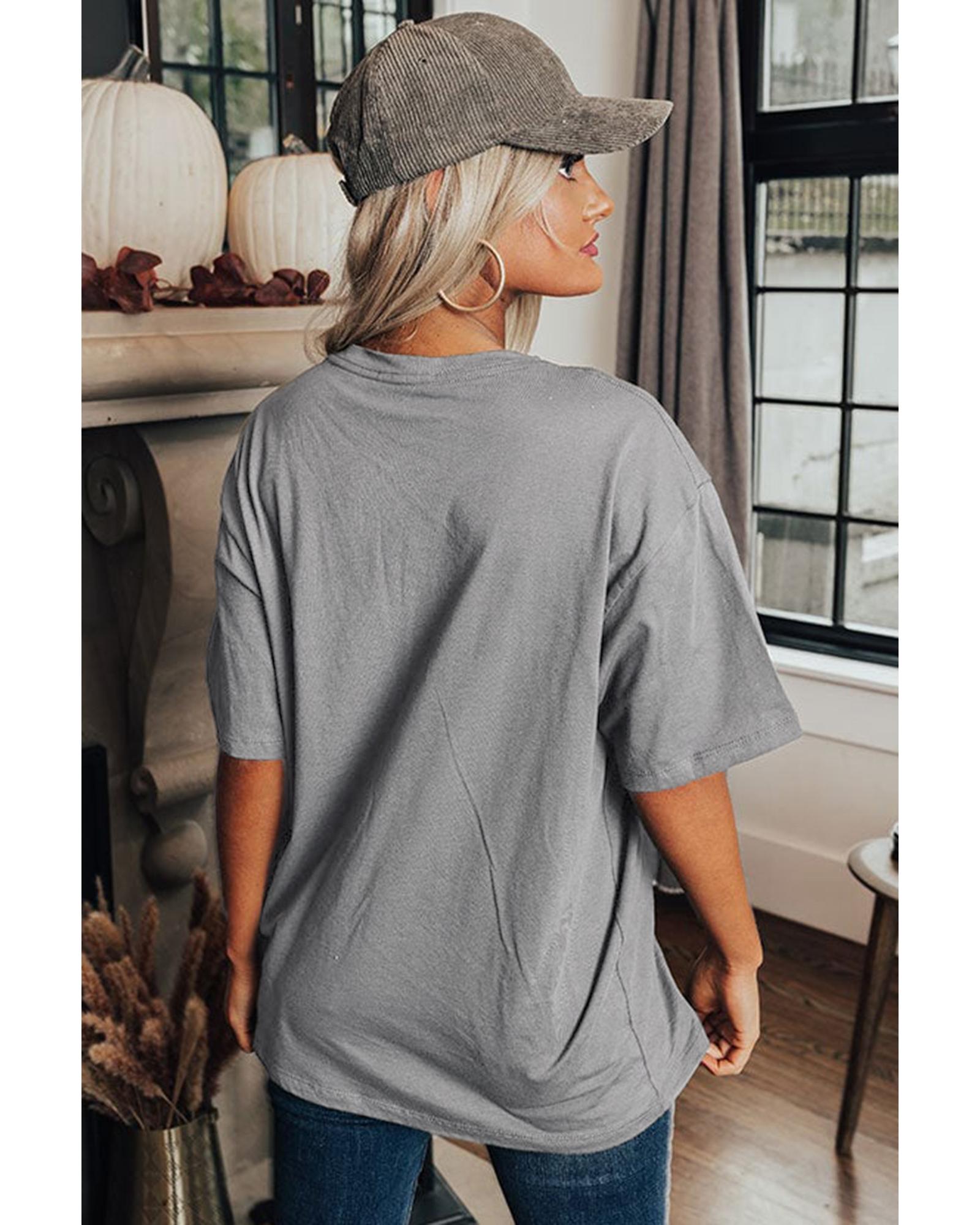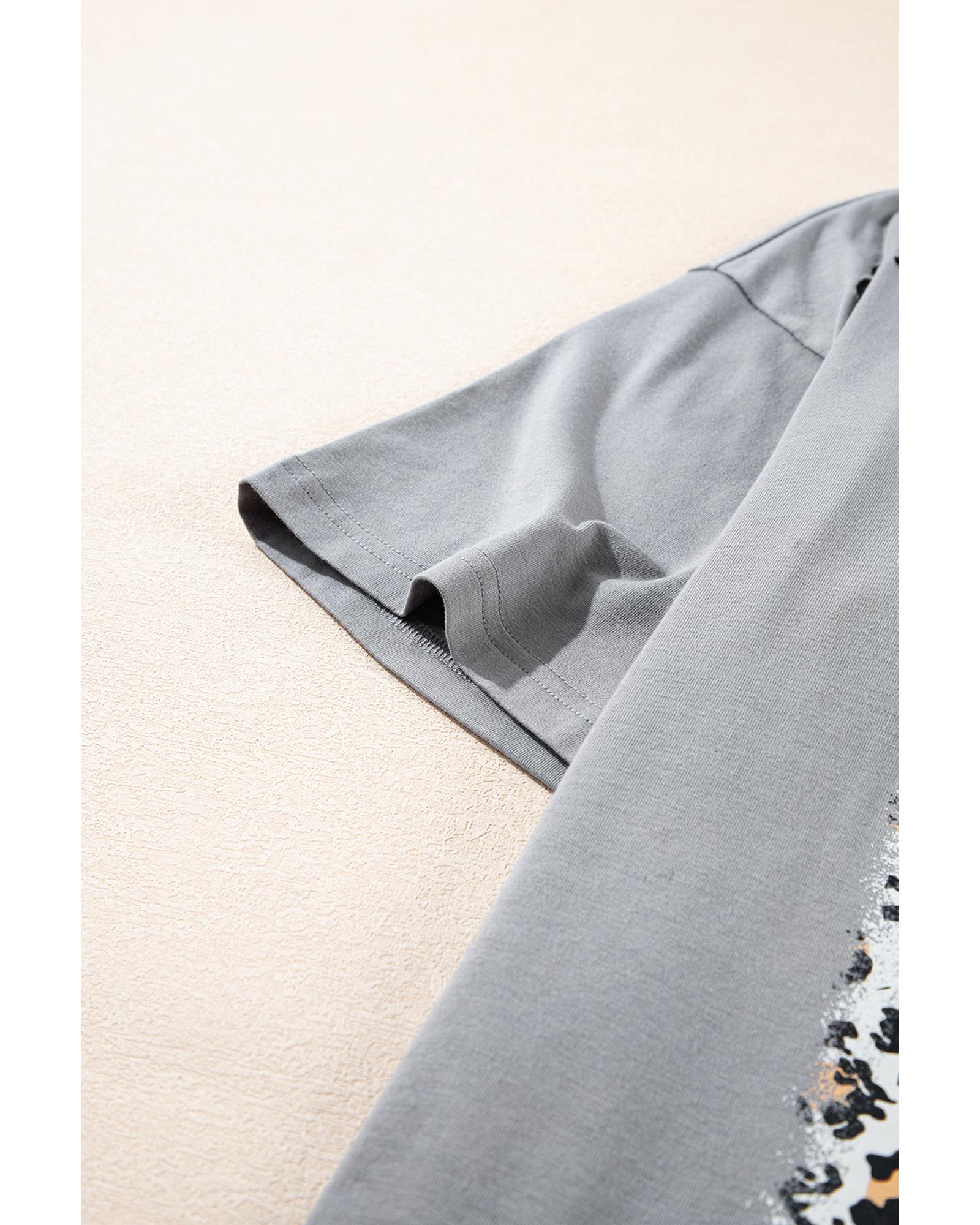 Medium Grey Stars Leopard Graphic Distressed Tee – S