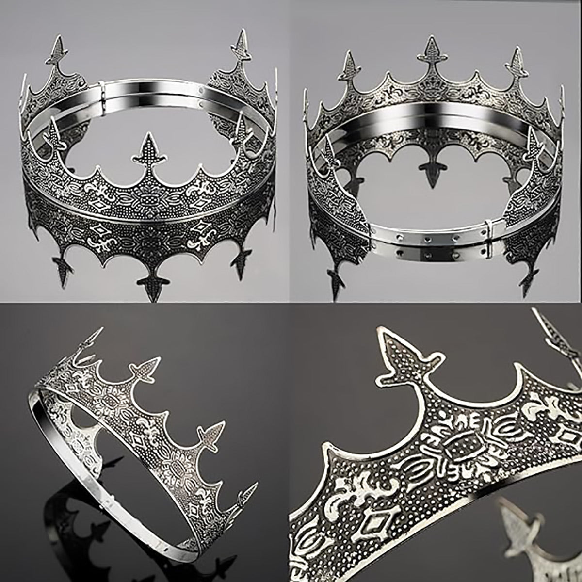 Men Crown Headpiece Royal Vintage Metal Crown Gold Medieval King Costume Party