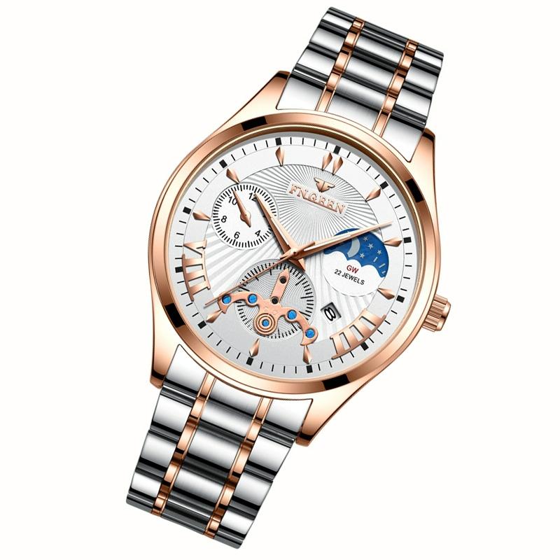 Men Luminous Casual Quartz Watch – 5606 – White Steel White Shell Black Surface