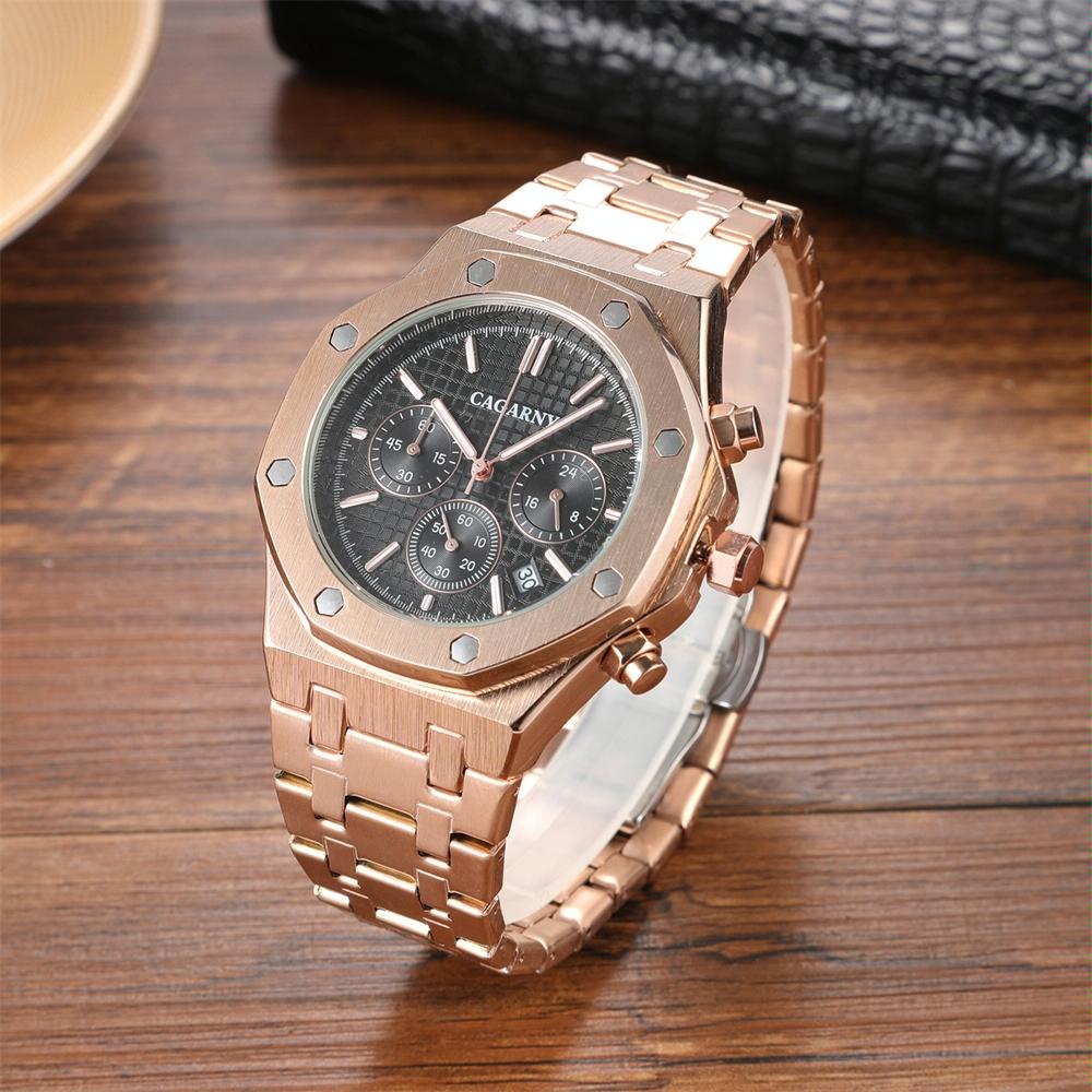 Men Simple Steel Quartz Watch with Band – 6835 – Rose Gold + Black