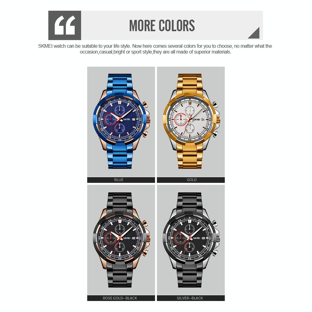 Men Stainless Steel Quartz Watch with Luminous Calendar and Timing – Blue