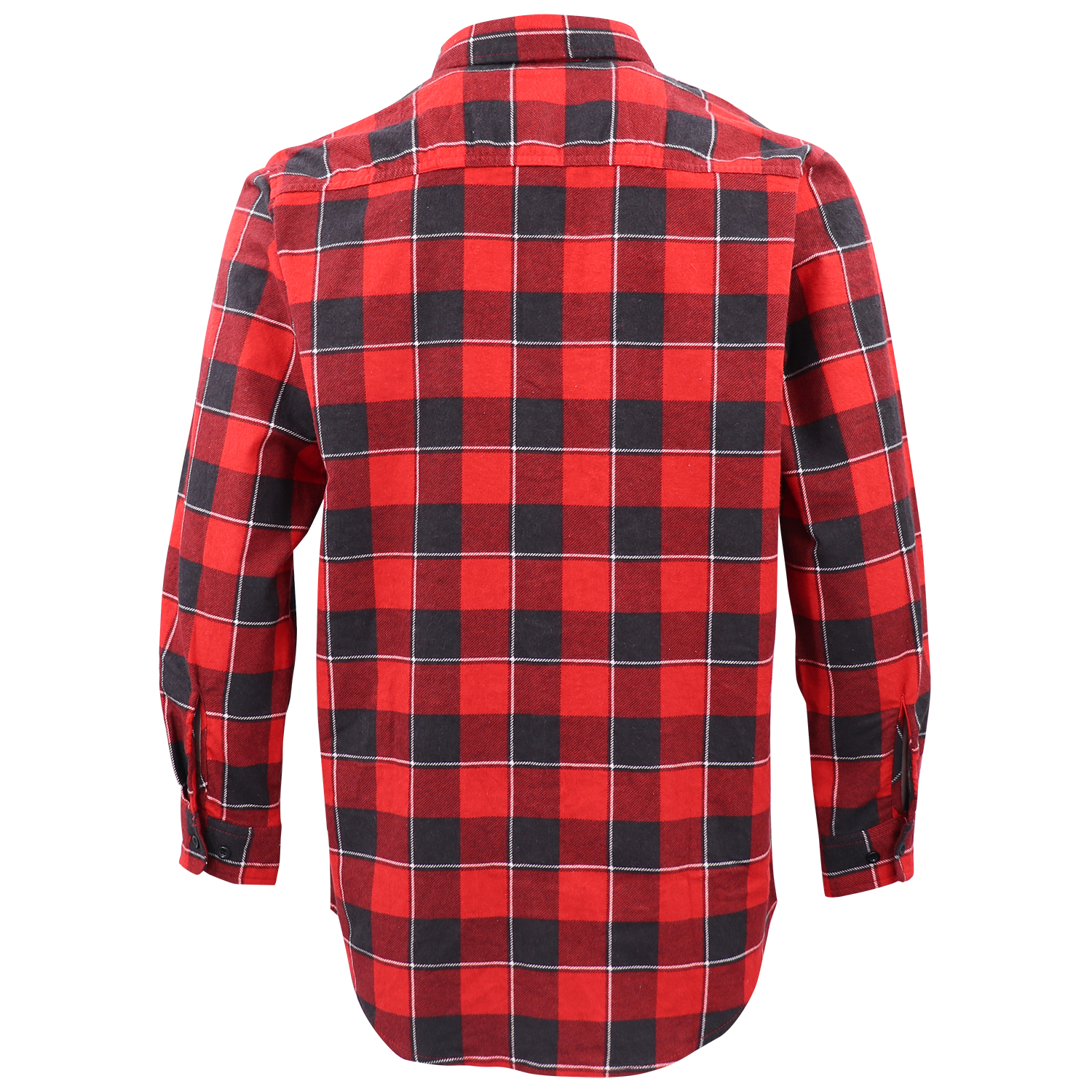 Men’s 100% Cotton Flannelette Shirt Long Sleeve Plaid Check Flannel w Pockets, Lumberjack Red Buffalo Plaid, XL