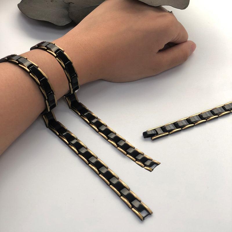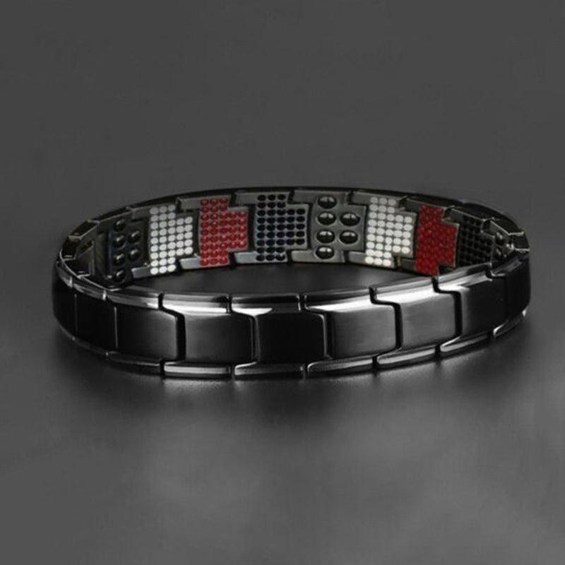 Mens Double Strong Magnetic Therapy Bracelet Arthritis Pain Relief Jewelry Au – Black Silver