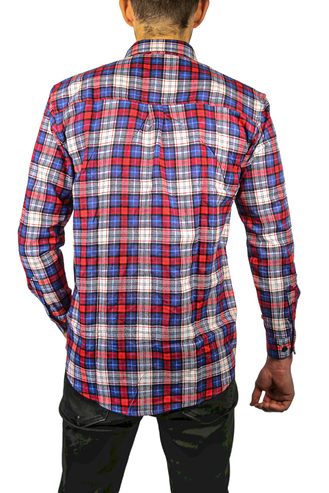 Mens Flannelette Long Sleeve Shirt 100% Cotton Check Authentic Flannel – Full Placket – Navy/Red/White – XL