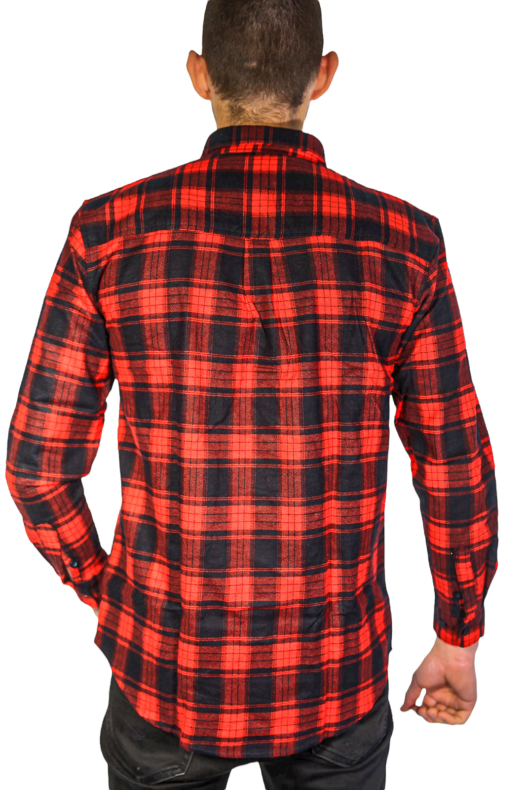 Mens Flannelette Long Sleeve Shirt 100% Cotton Check Authentic Flannel – Full Placket – Red – 6XL