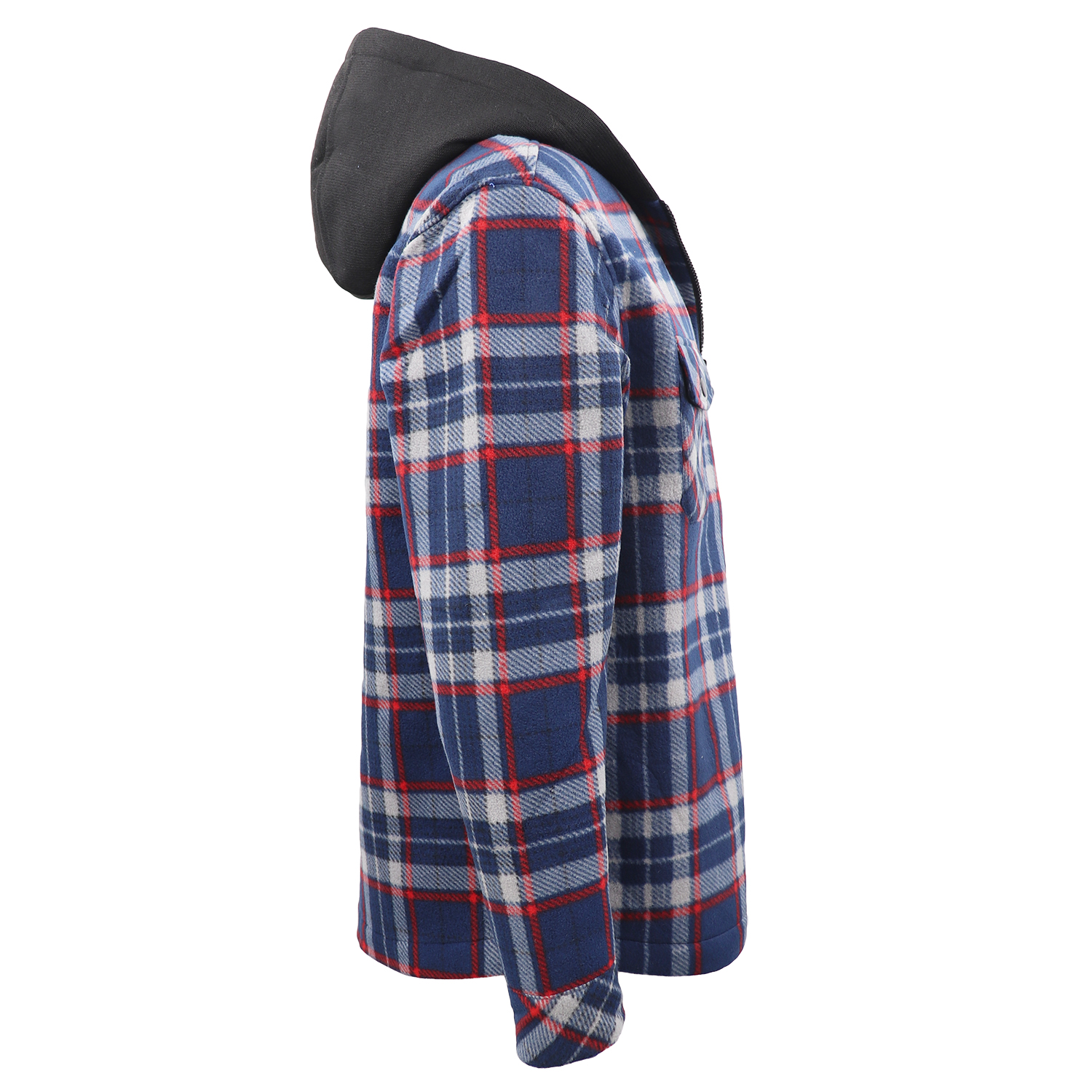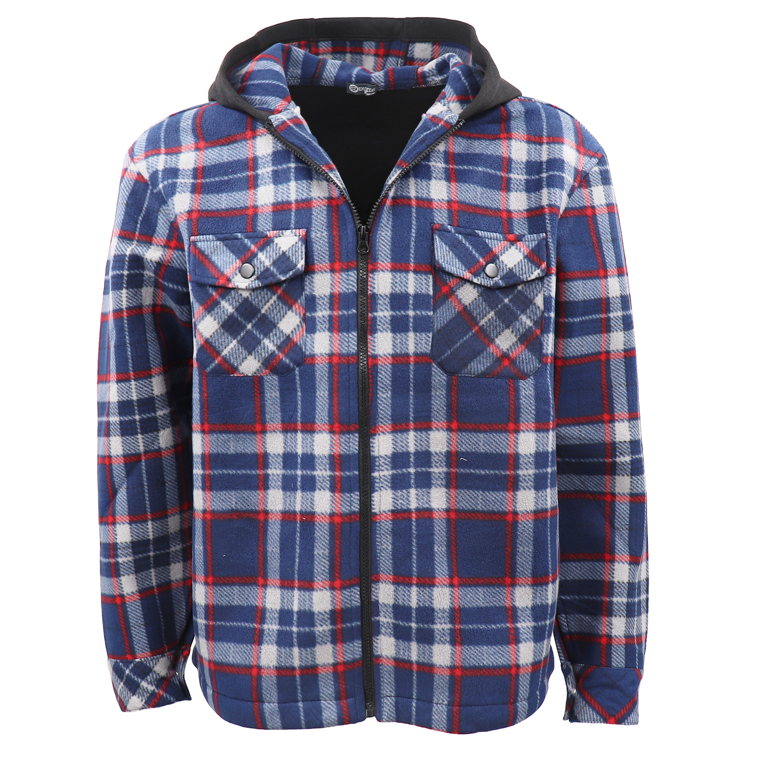 Men’s Hooded Flannel Jacket Flannelette Plaid Fleece Shirt Zip Up Winter Coat, Blue, S