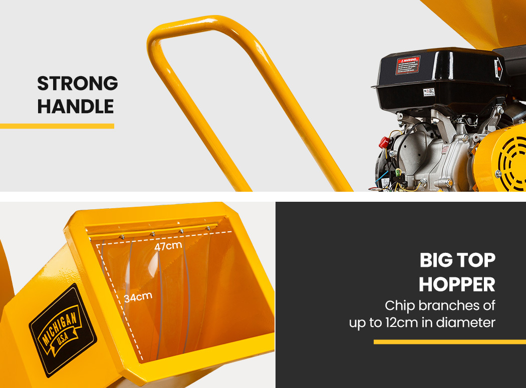 MICHIGAN 7HP 212cc Petrol Commercial Wood Chipper Shredder, Tree Mulcher - Raptor 950 Original price was: $1,786.99.Current price is: $964.99.