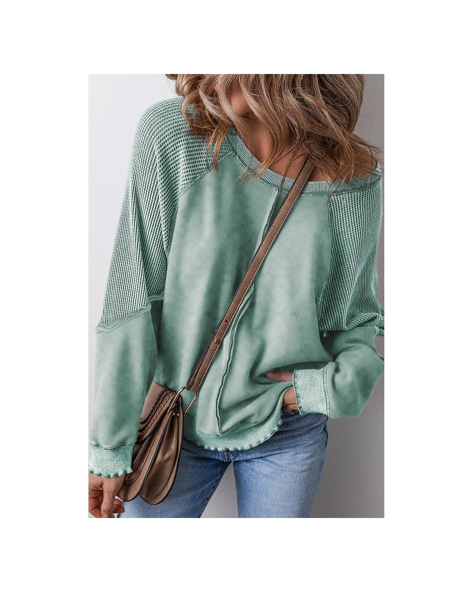 Mineral Blue Solid Waffle Knit Patchwork Raglan Sleeve Sweatshirt – M