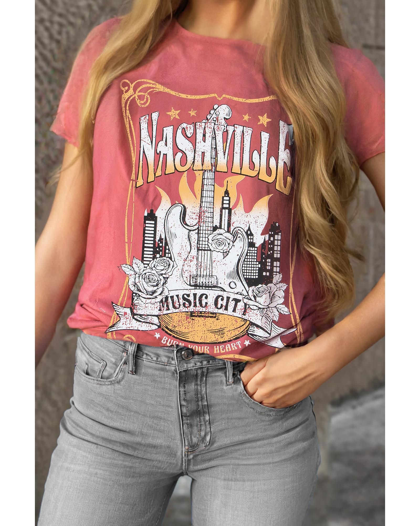 Mineral Red Nashville Music City Graphic Retro Fashion Tee – S