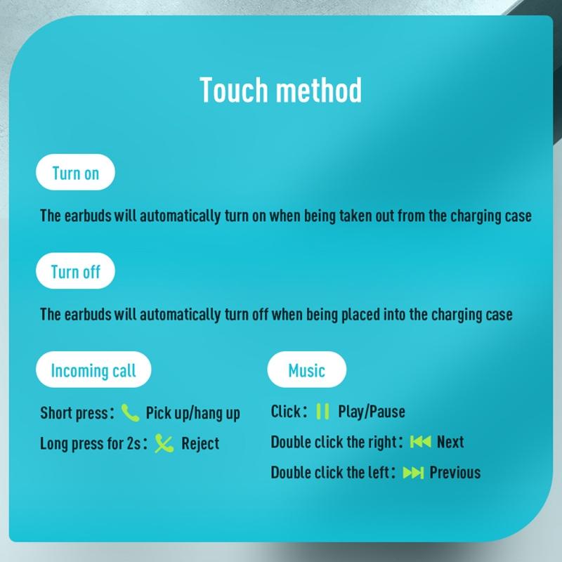 • Automatic pairing and connection for both left and right earphones when taken out of the charging box