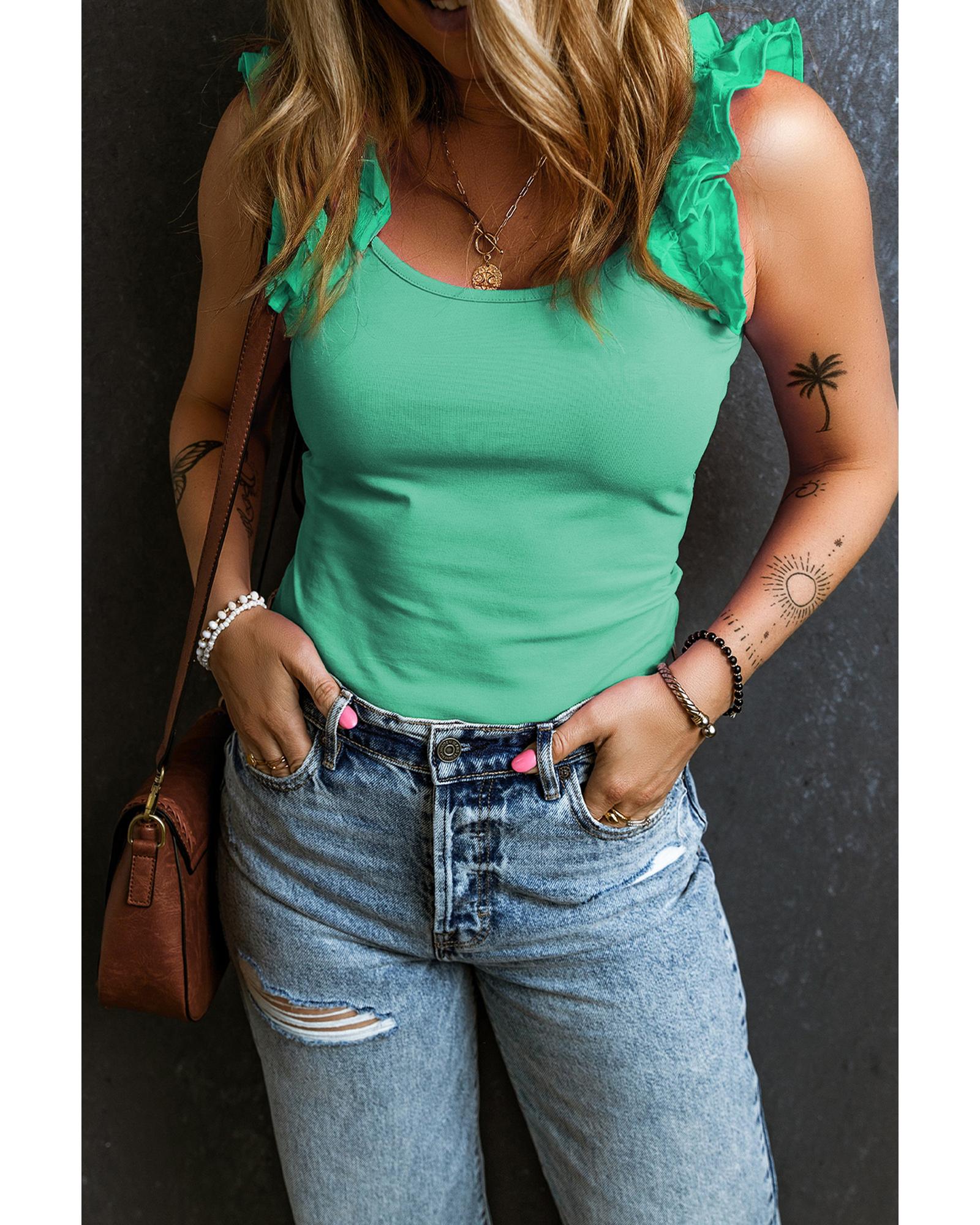Mint Green Ruffled Wide Straps Slim Tank Top – XL