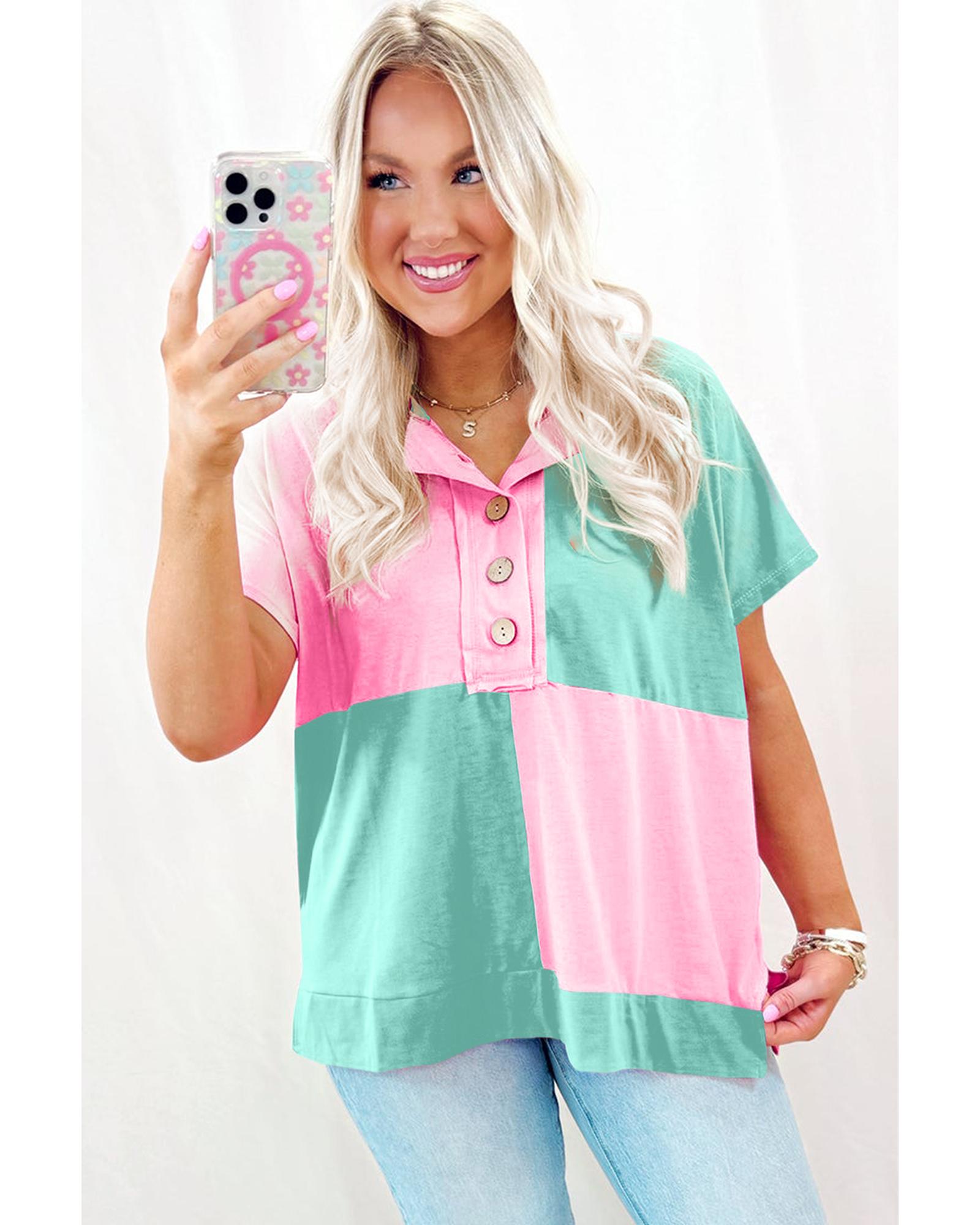 Mint Green Two Tone Half Buttons Collared T Shirt – XL