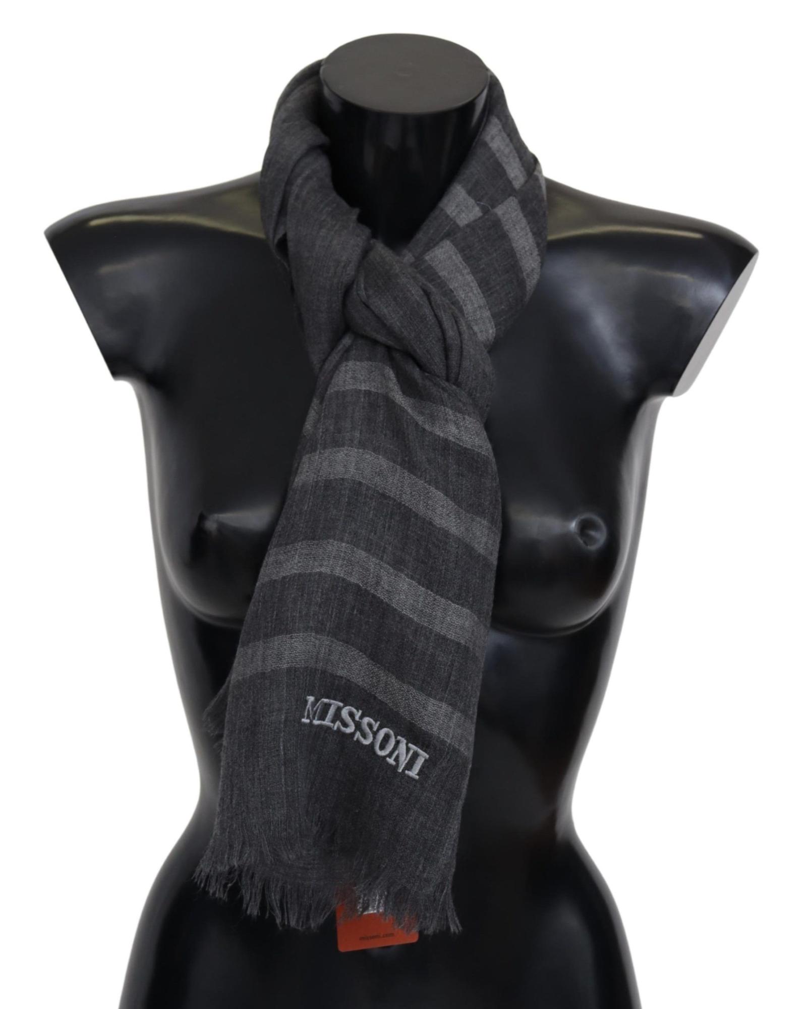 Missoni Men’s Gray Striped Wool Unisex Neck Wrap Fringes Scarf – One Size