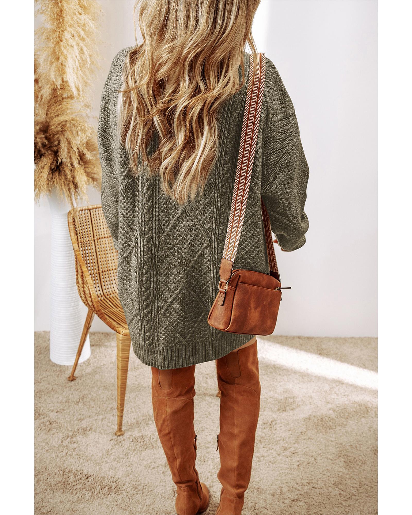 Mist Green Cable Knit Drop Shoulder Loose Fit Sweater Dress – L