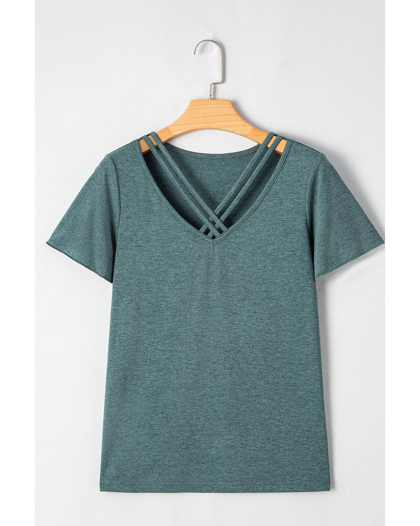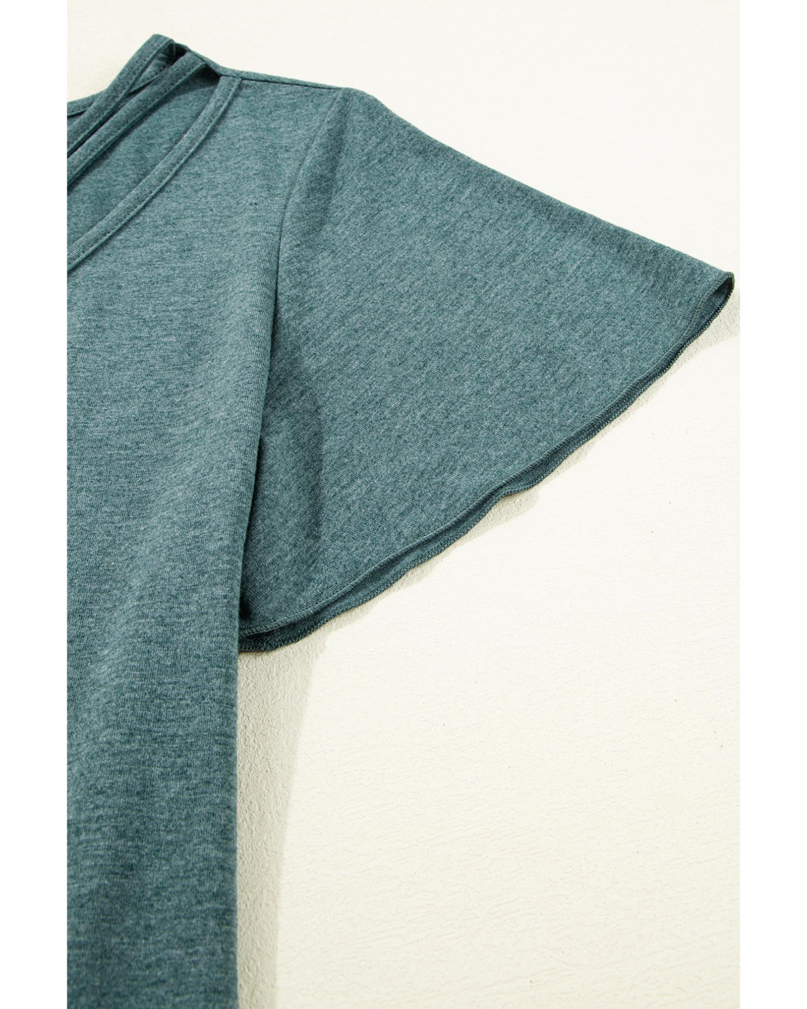 Mist Green Crisscross V Neck Butterfly Sleeve T Shirt – S