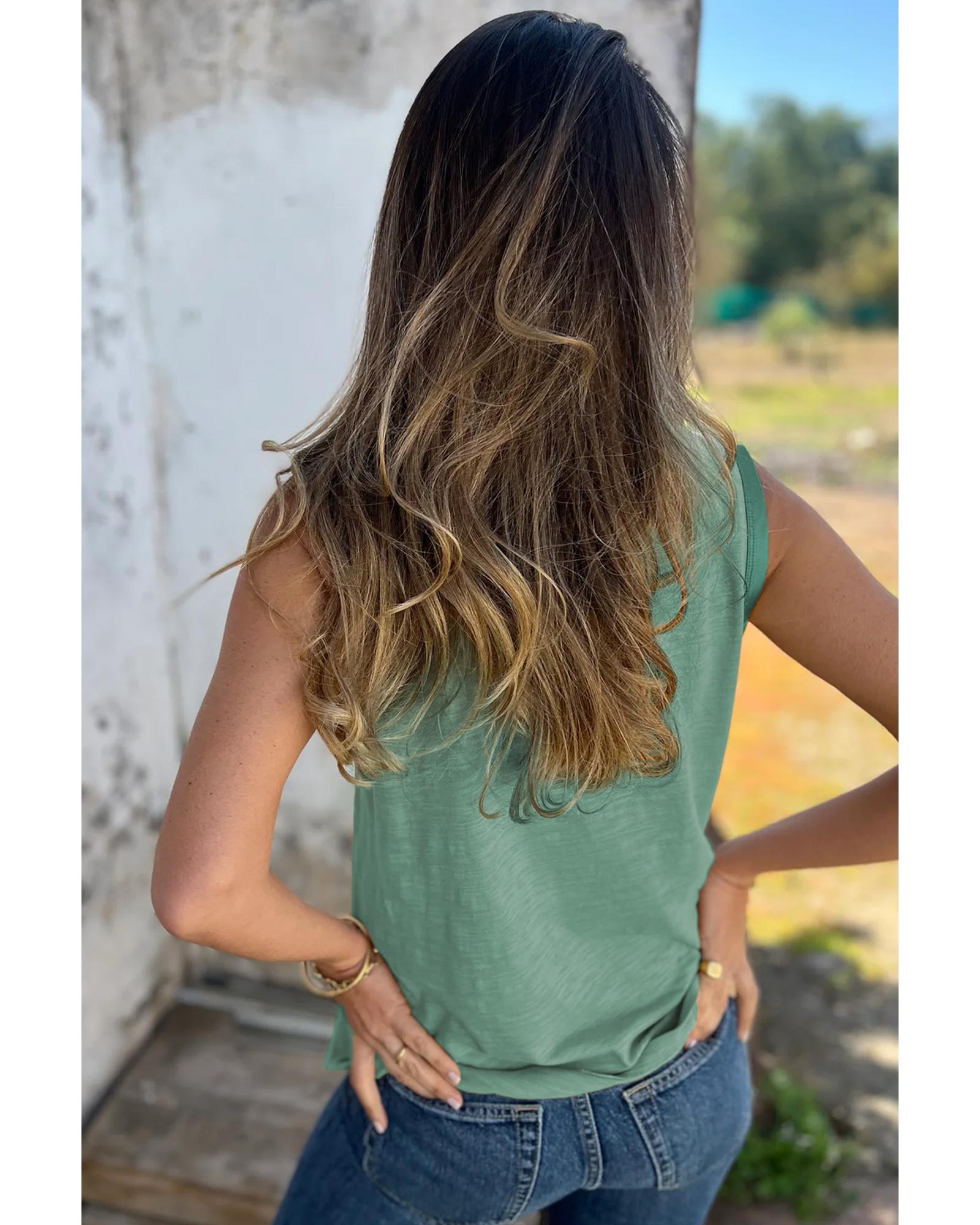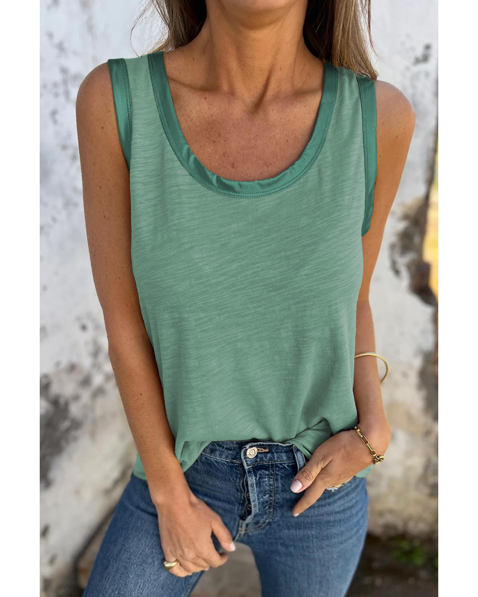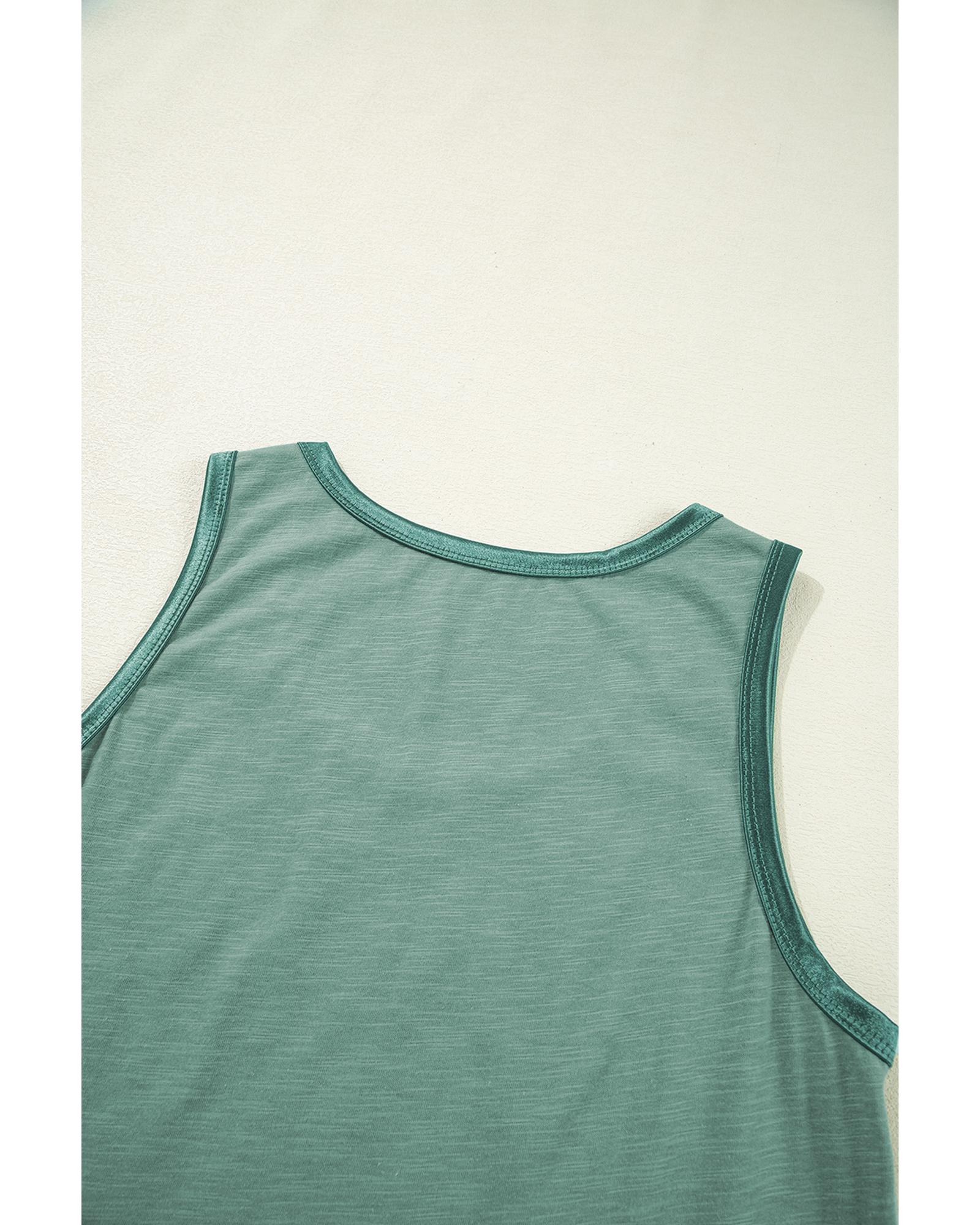 Mist Green Metallic Sheen Edge Scoop Neck Tank Top – L