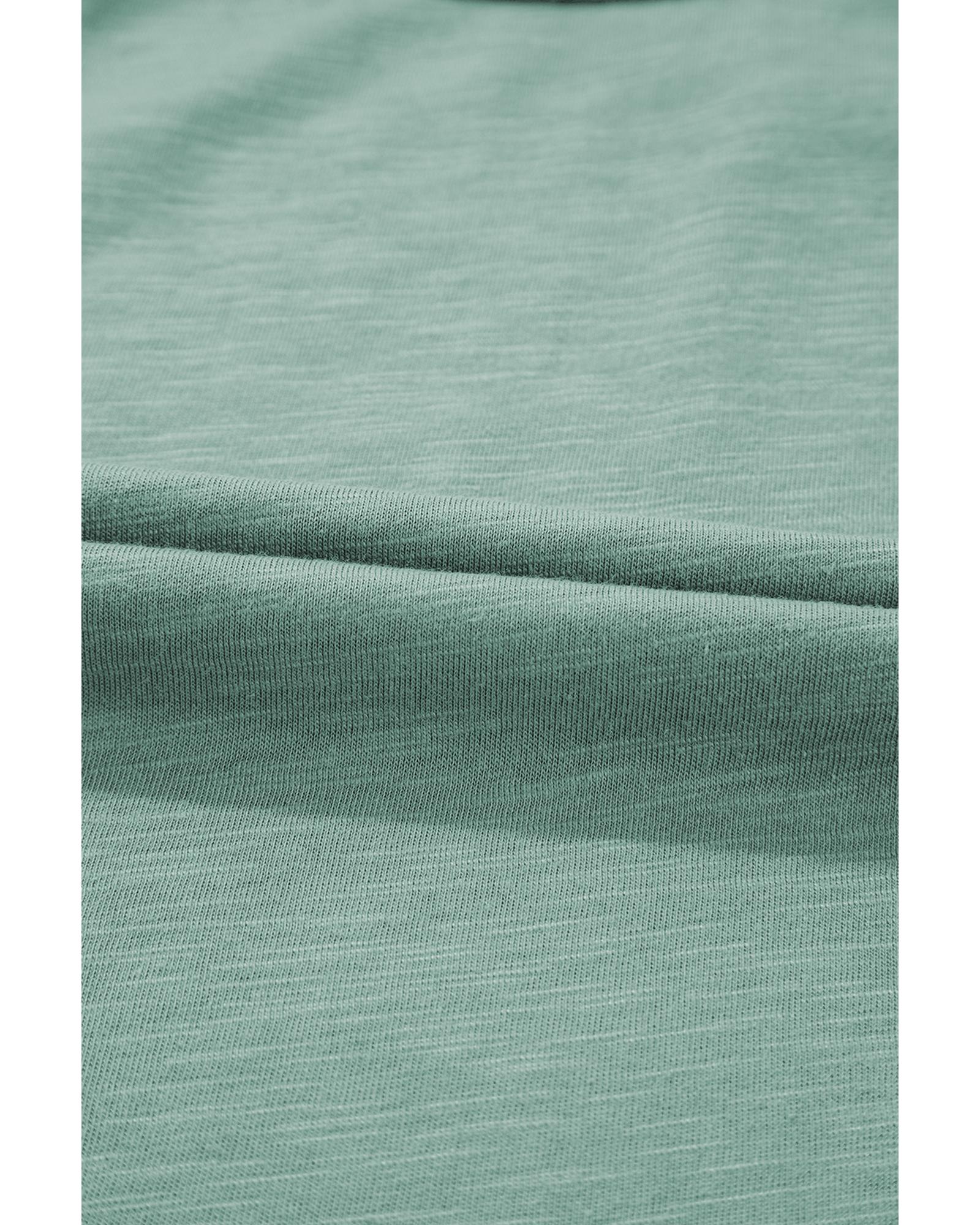 Sea Green Lattice Textured Split Neck Tank Top - M