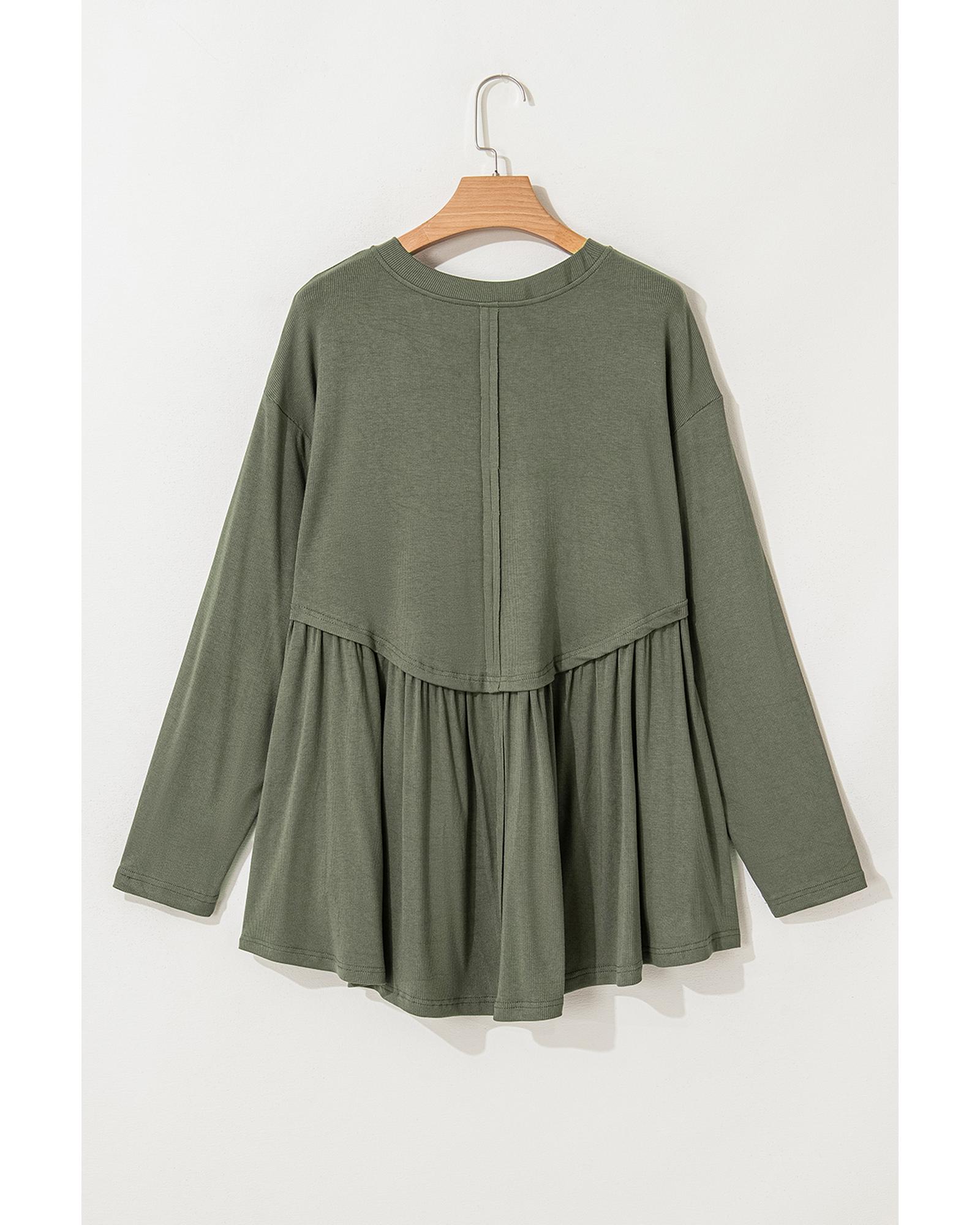 - Mist Green Plus Size Thermal Knitted Babydoll Flare Top