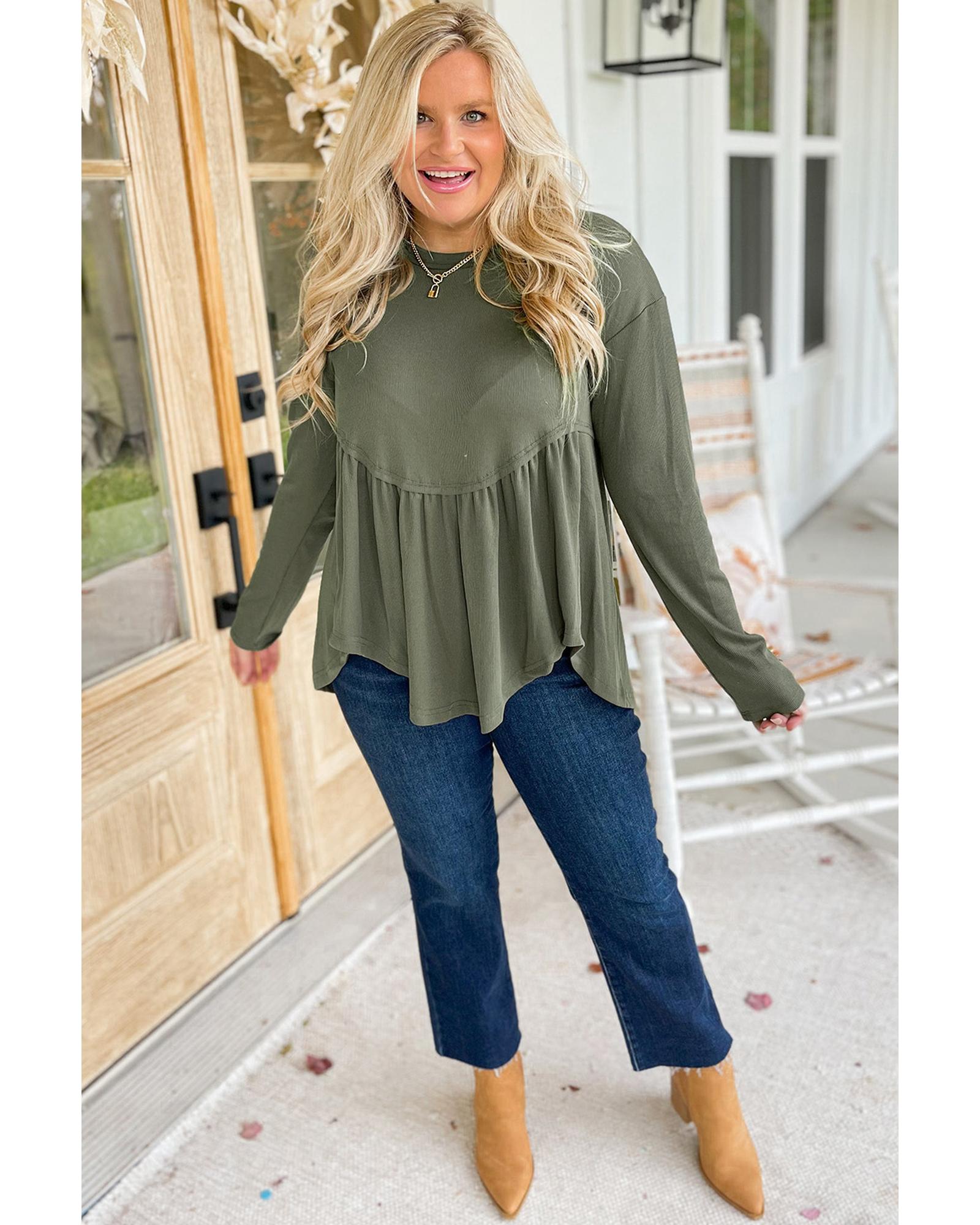 - Mist Green Plus Size Thermal Knitted Babydoll Flare Top