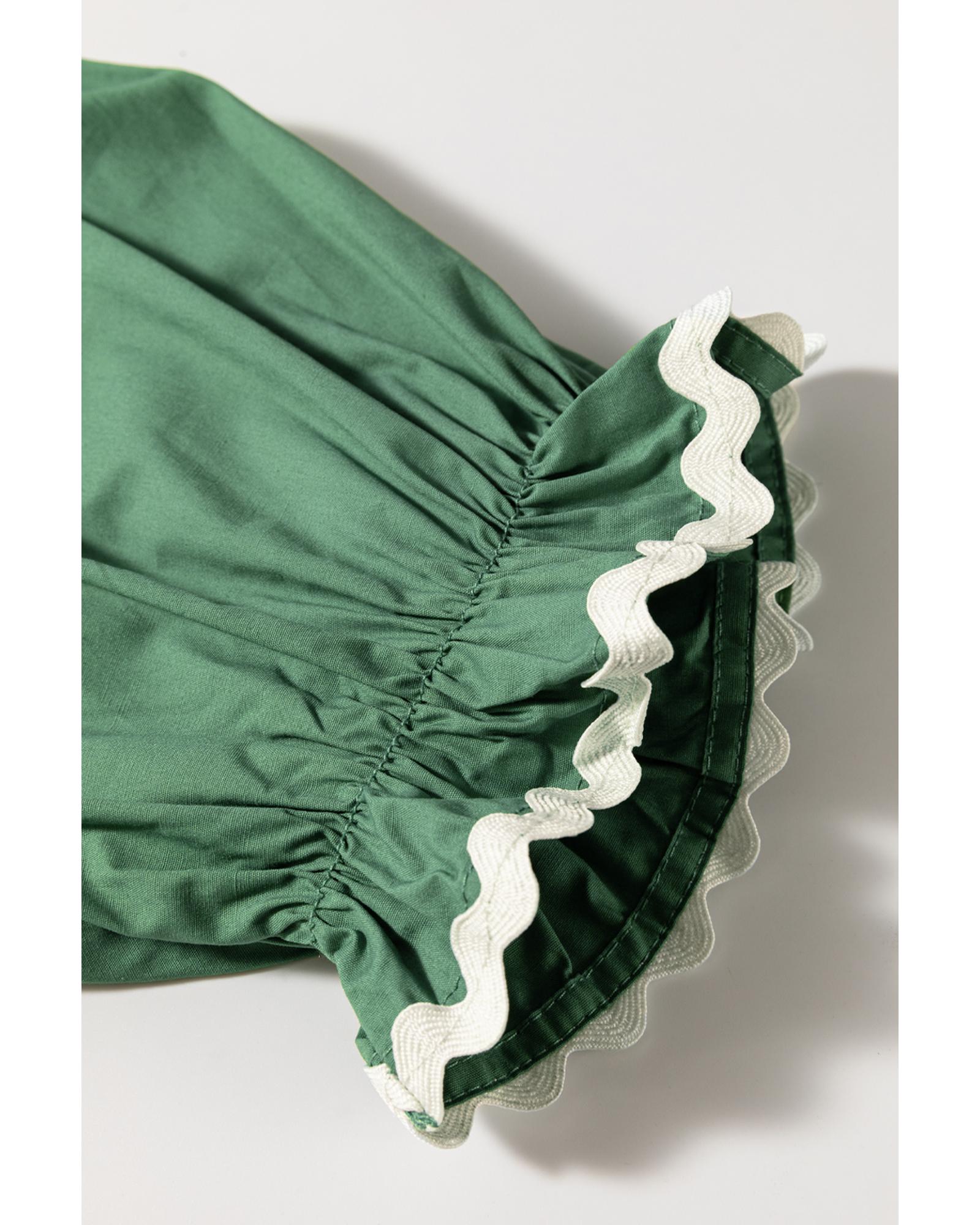 Mist Green Ric Rac Trim Tie Split Neck Short Sleeve Blouse – S