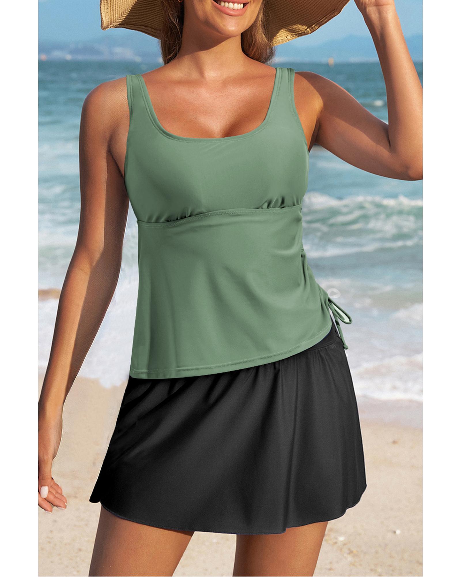 • Mist Green Scoop Neck Adjustable Tankini and Matching Skort Bathing Suit