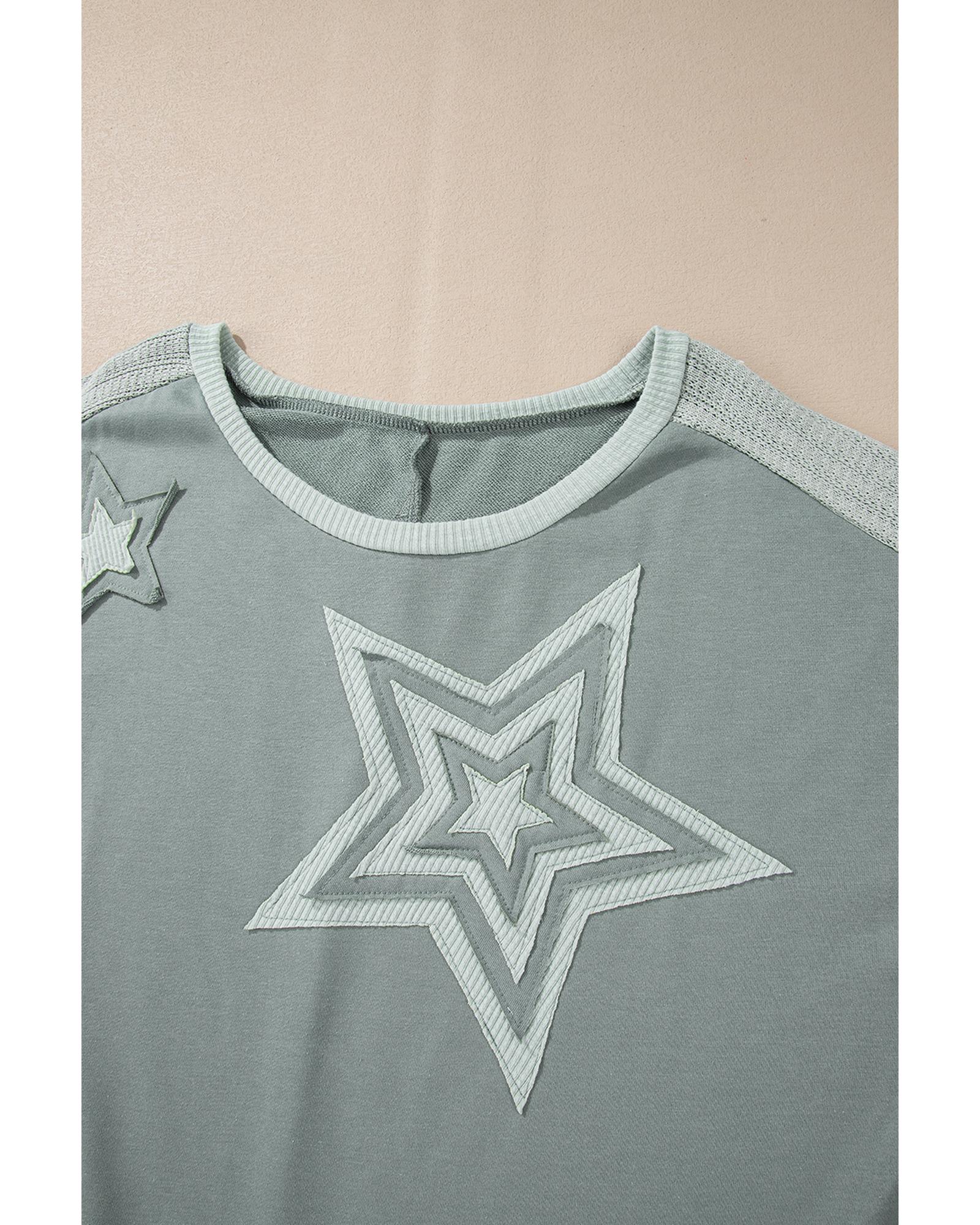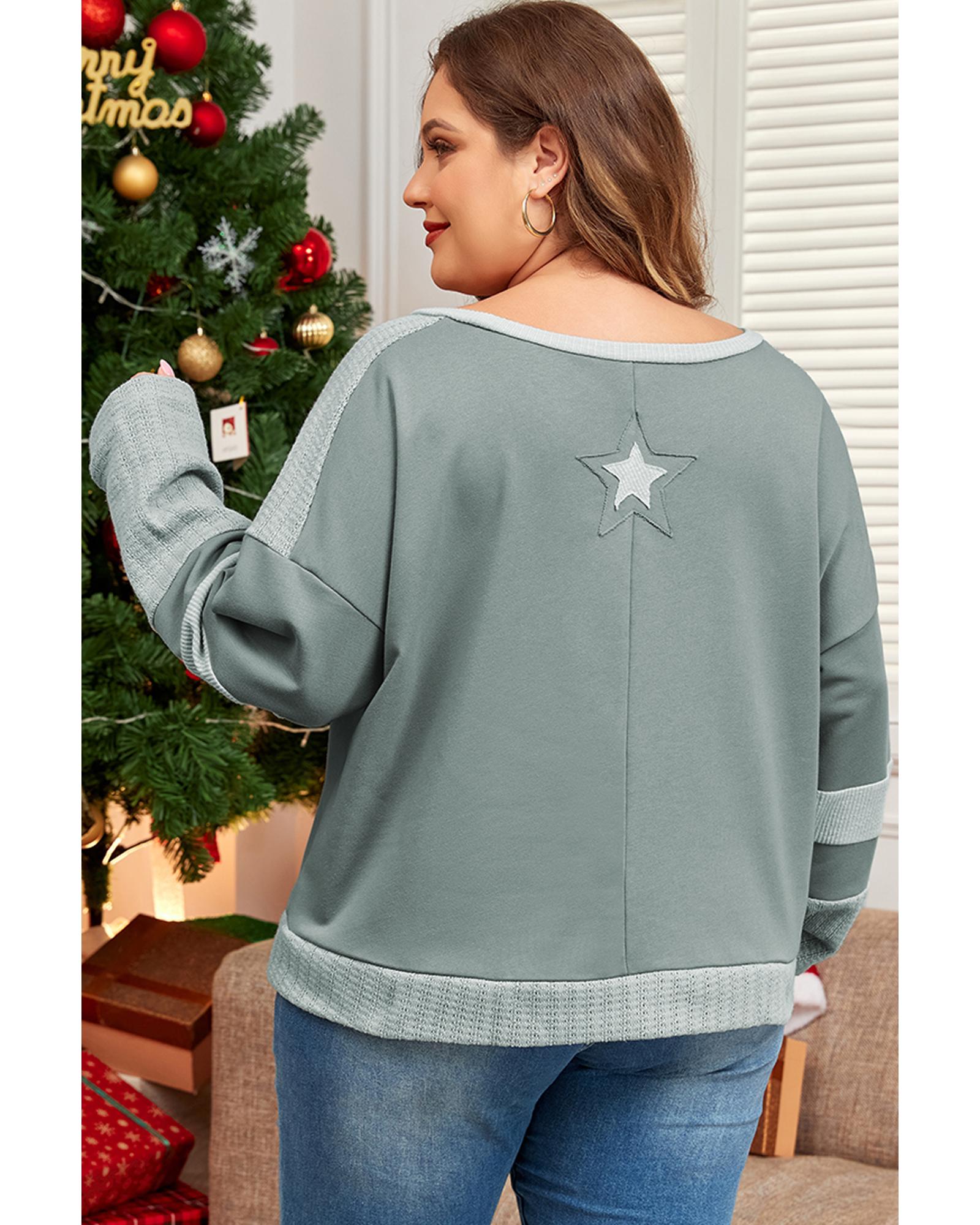 Mist Green Stars Patchwork Round Neck Plus Size T Shirt – 2X
