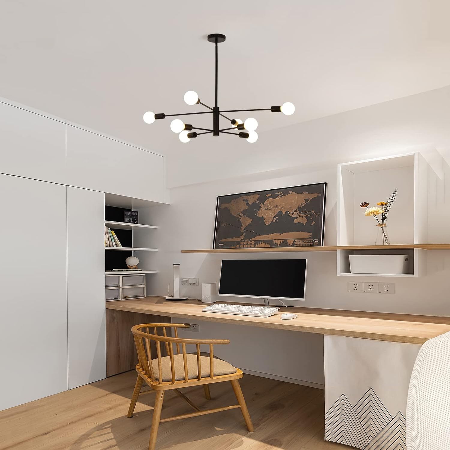 - This sputnik-style chandelier is the perfect light for any home. Its modern and luxurious design, with golden copper and black painted metal details, adds a hint of fashion to any space. Enjoy the combination of modern minimalism and luxury style with this beautiful pendant lighting.