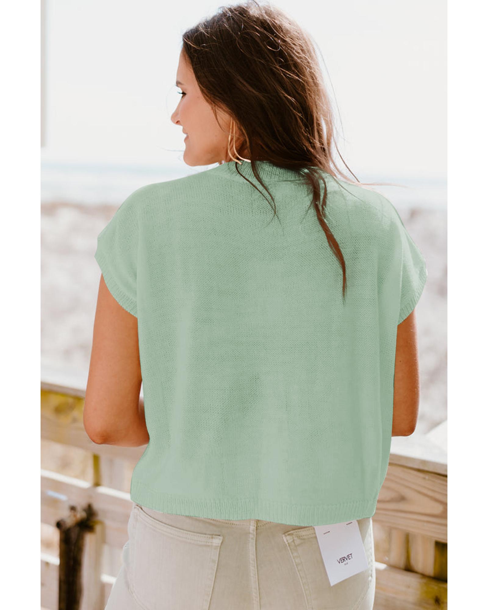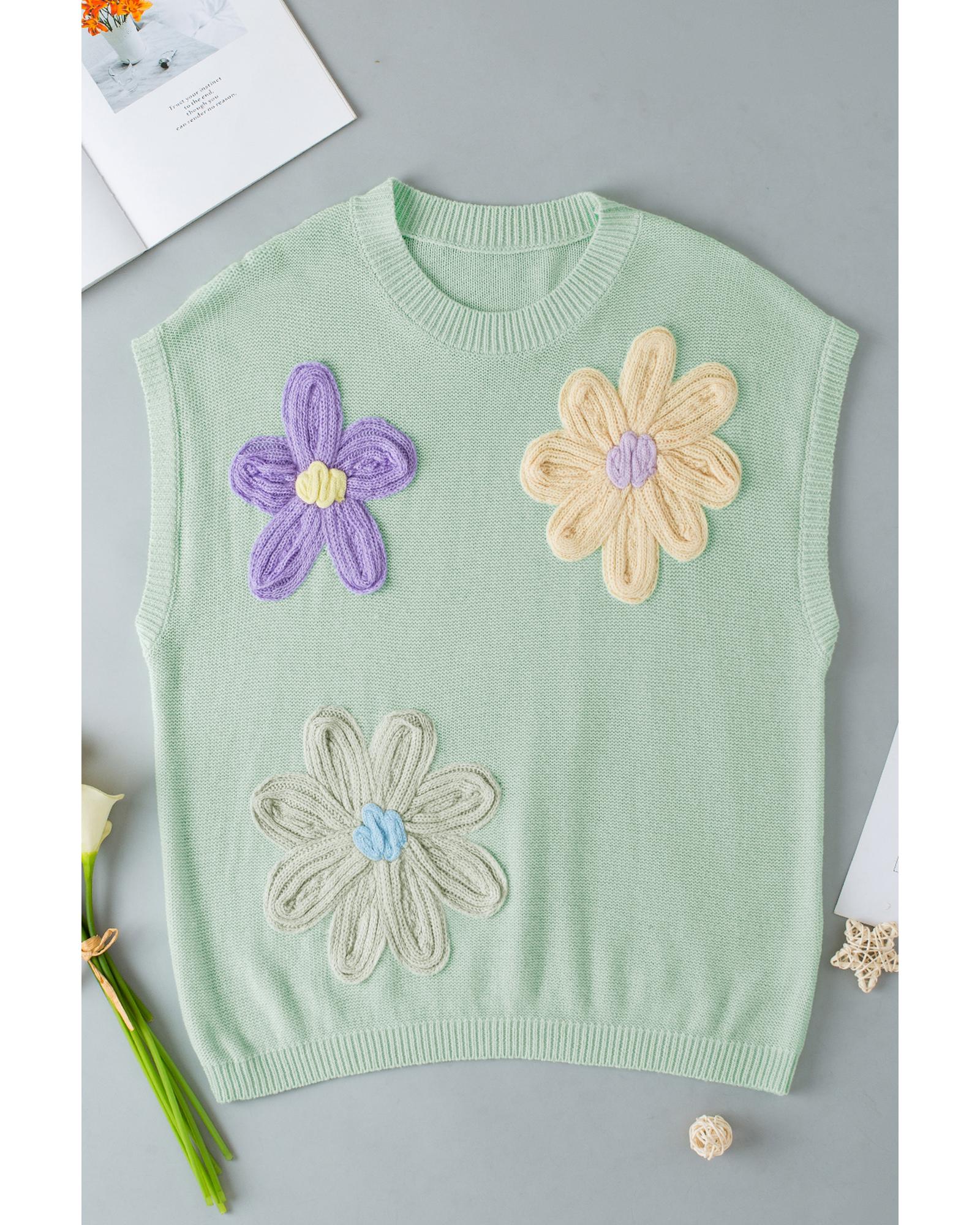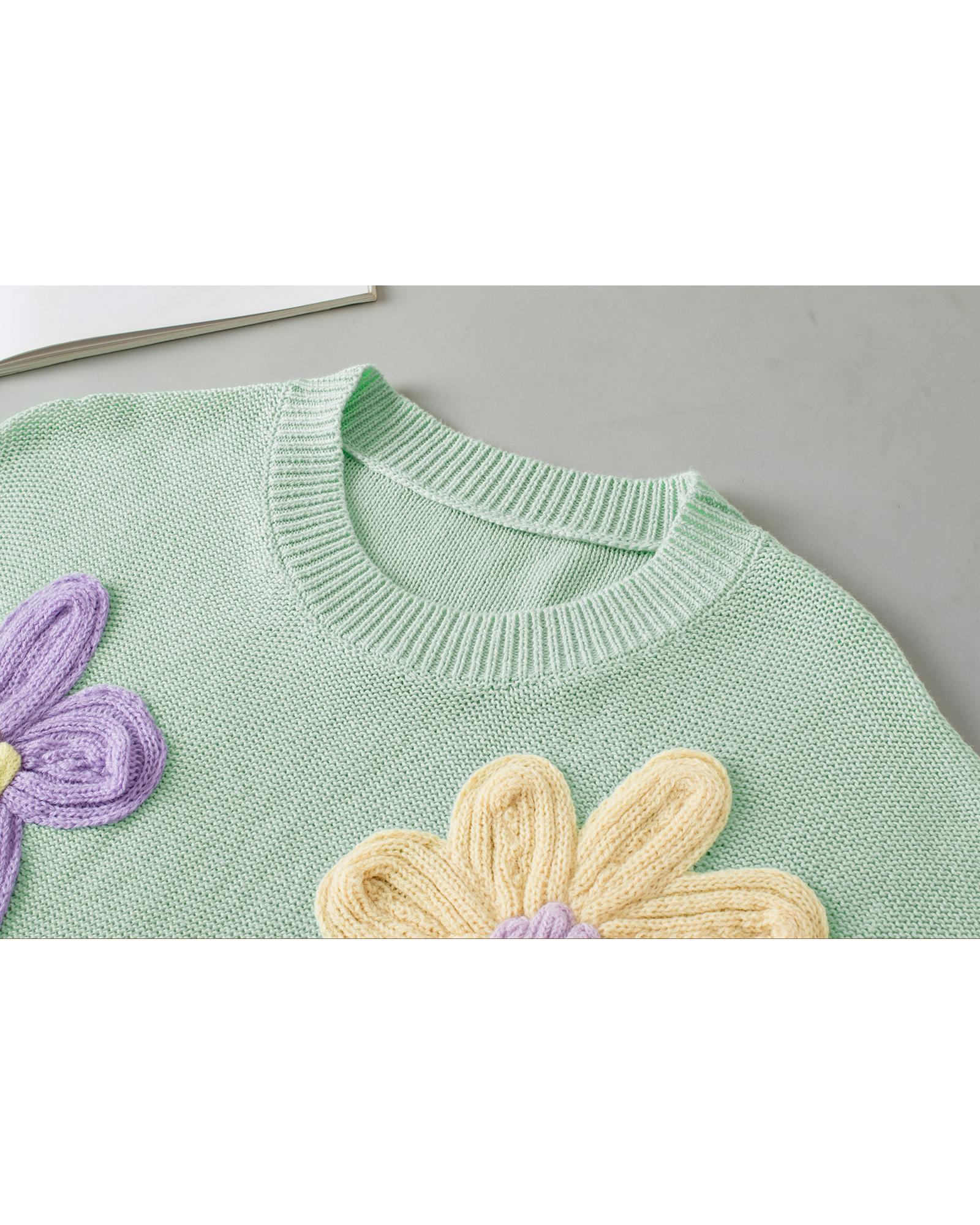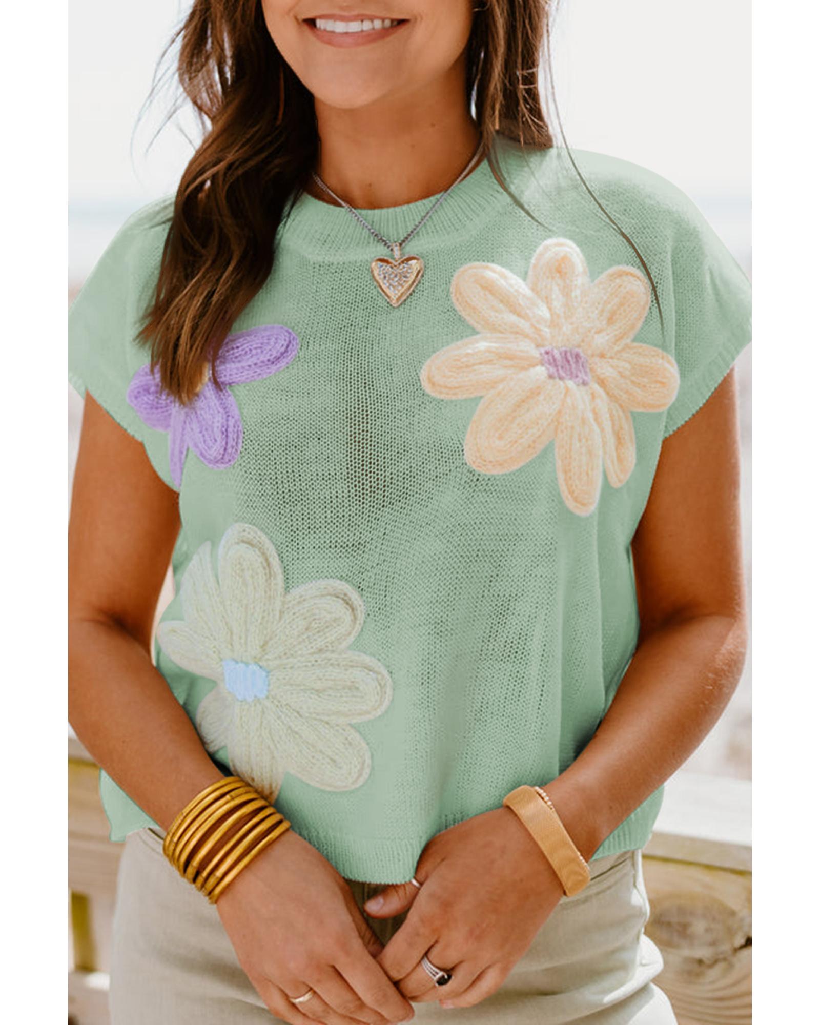 Moonlight Jade Multi Crochet Flower Knit Short Sleeve Sweater Top – XL