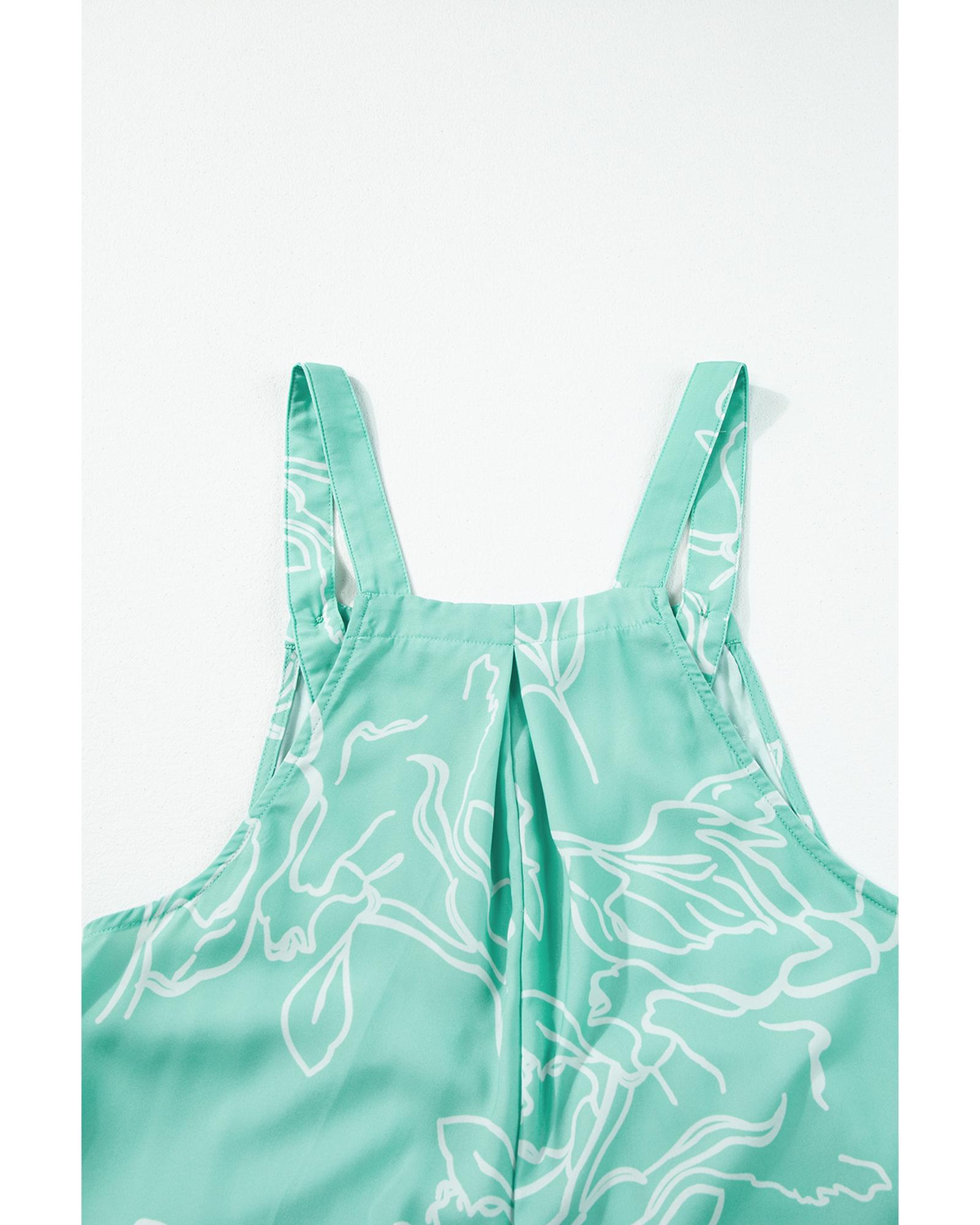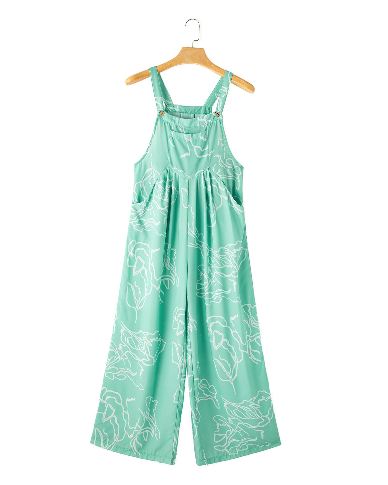 - Moonlight Jade Printed Bib Wide Leg Overalls