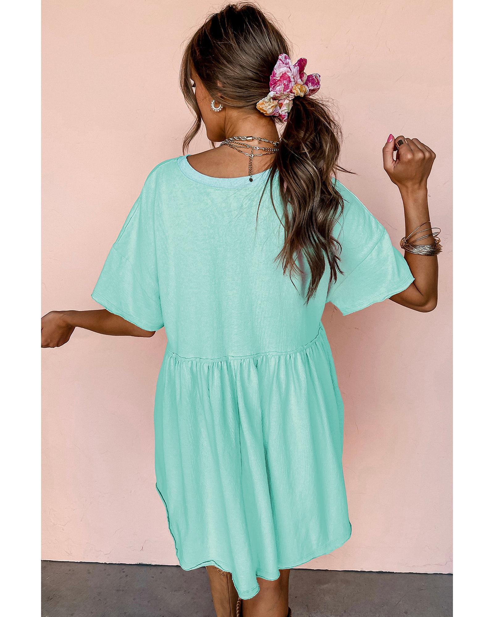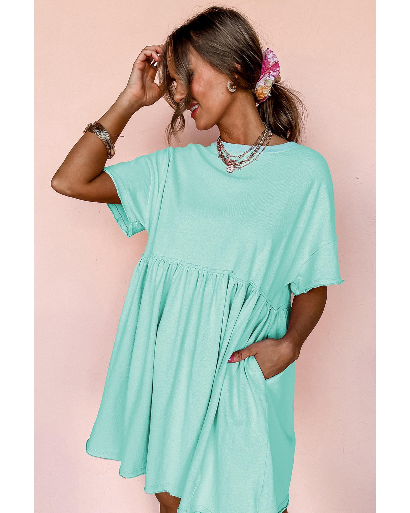 Moonlight Jade Solid Color Pocketed Raw Edge Babydoll Dress – L