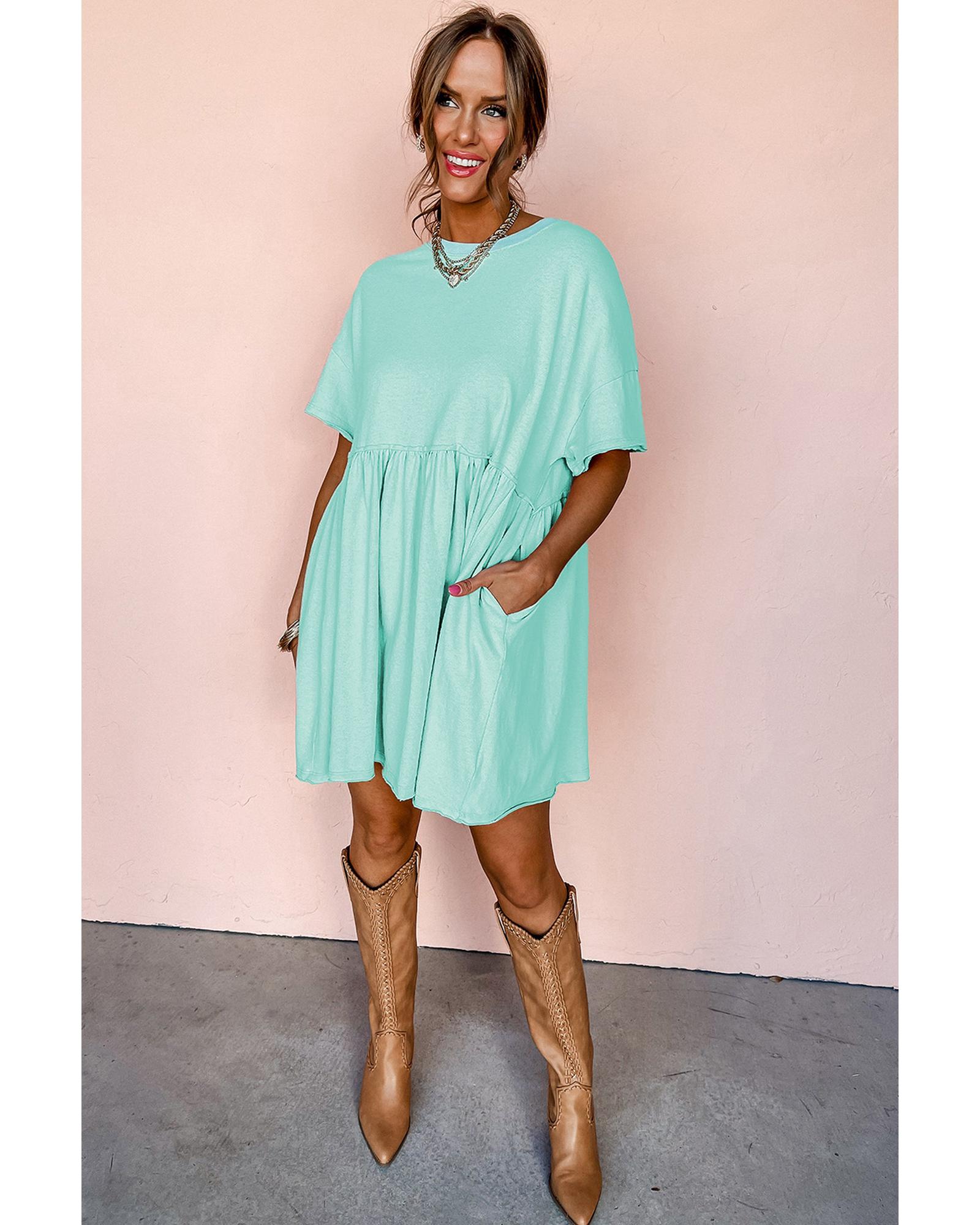Moonlight Jade Solid Color Pocketed Raw Edge Babydoll Dress – S