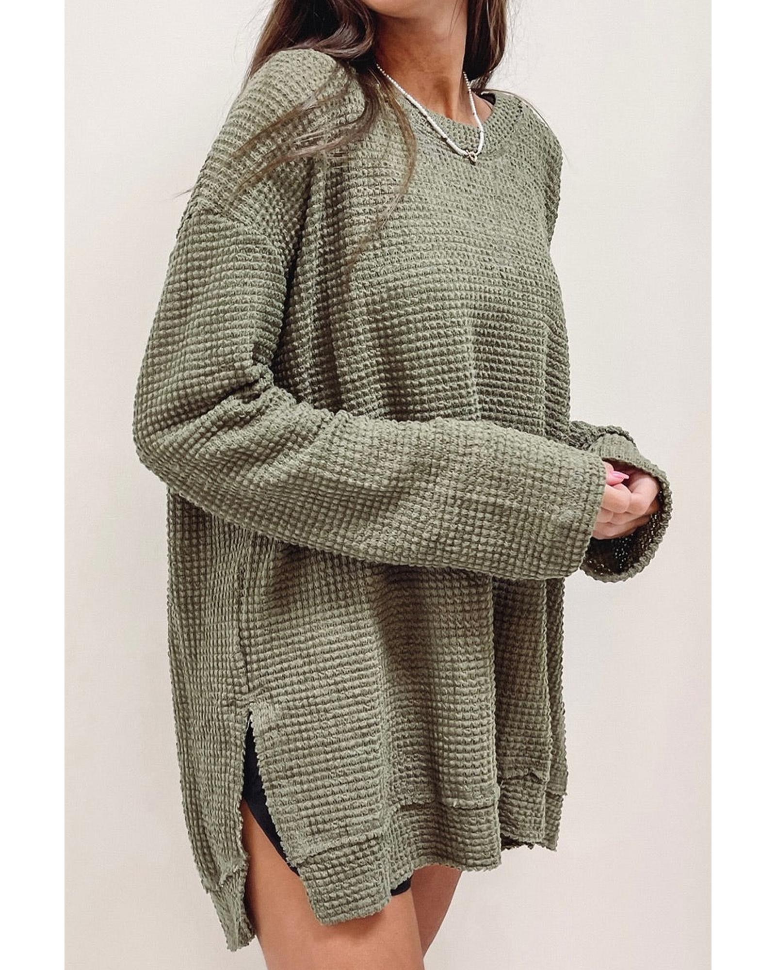 Moss Green Plus Size Textured Knit Long Sleeve Top – 1X
