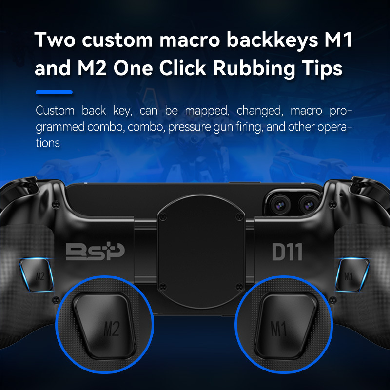 • Customizable Macro Back Keys: Two programmable back keys (M1 and M2) can be mapped for combos, macros, and other custom operations.