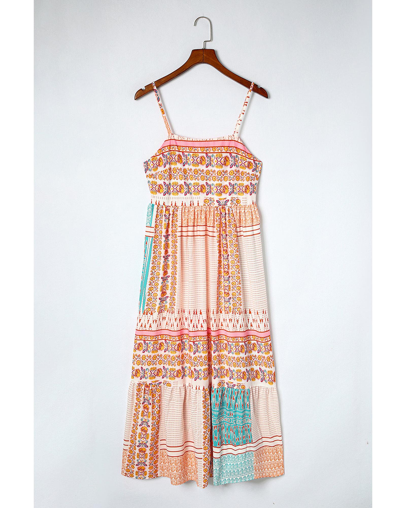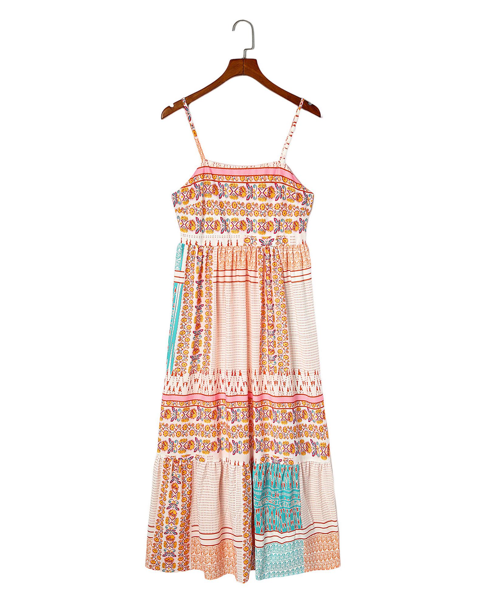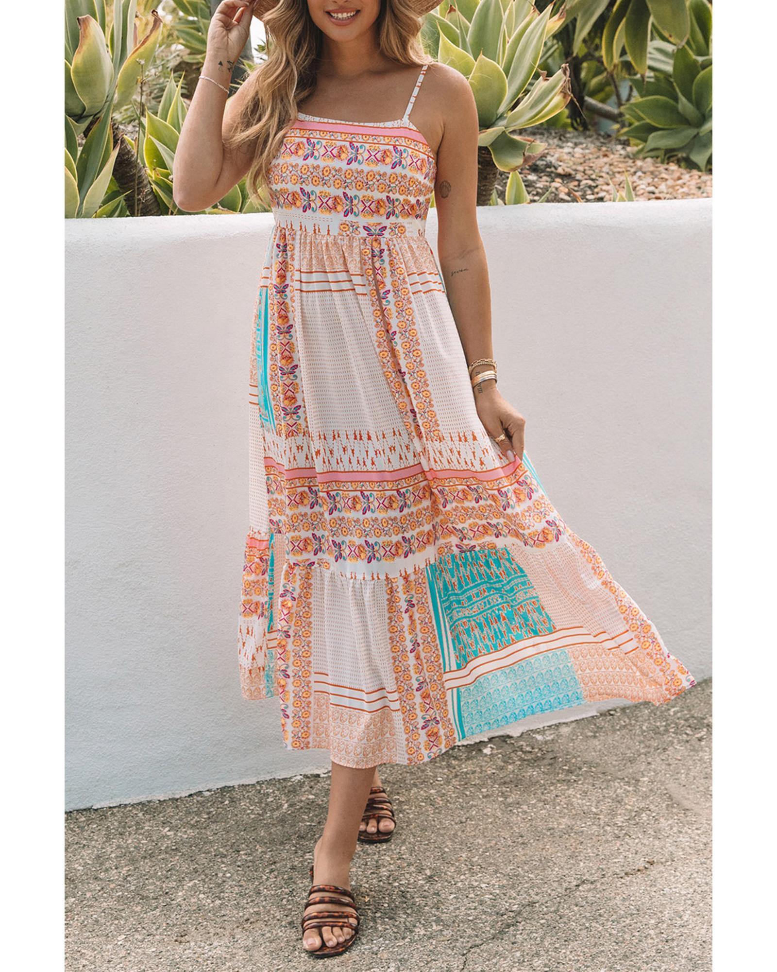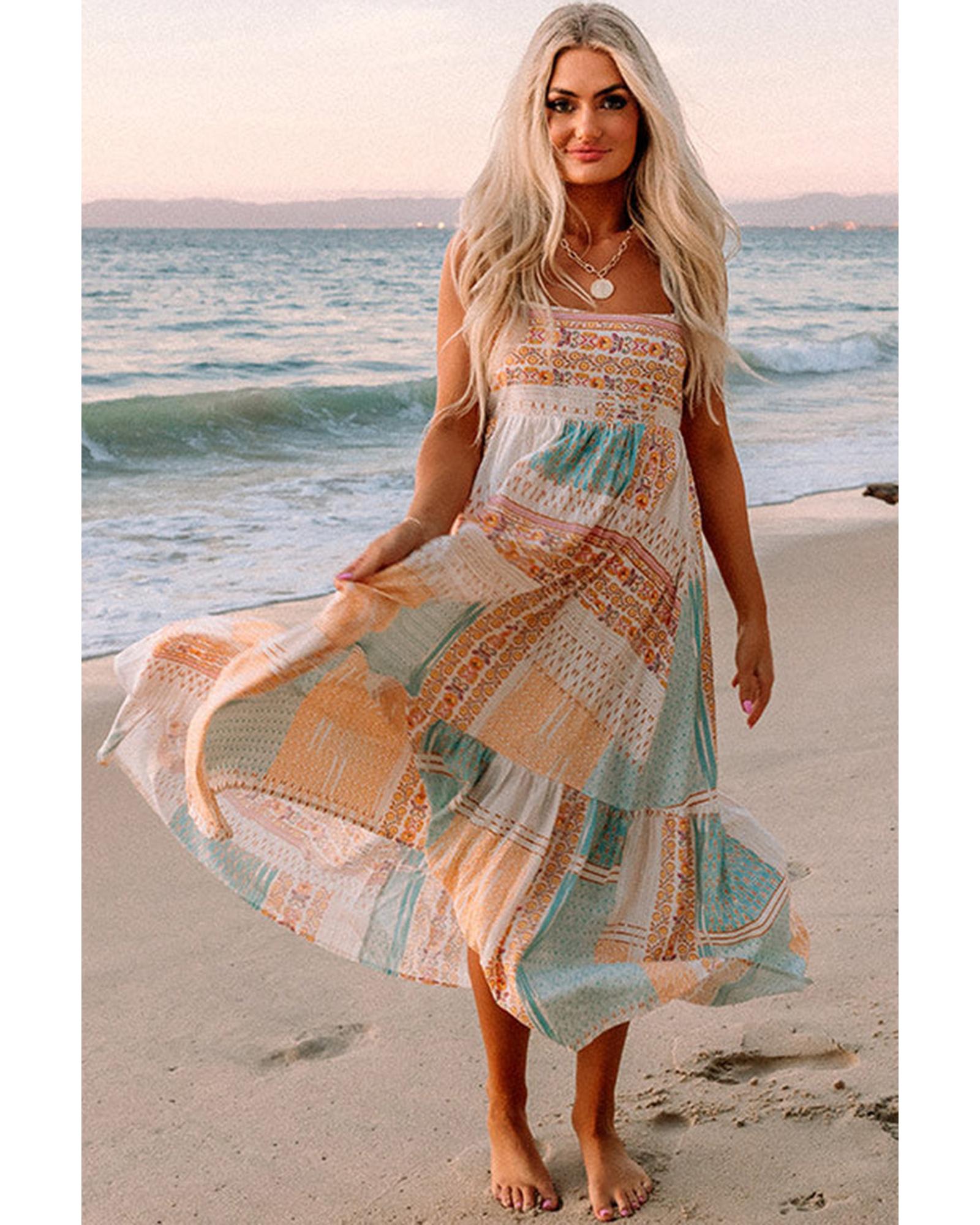 Multicolor Boho Patchwork Print Square Neck Sundress – S