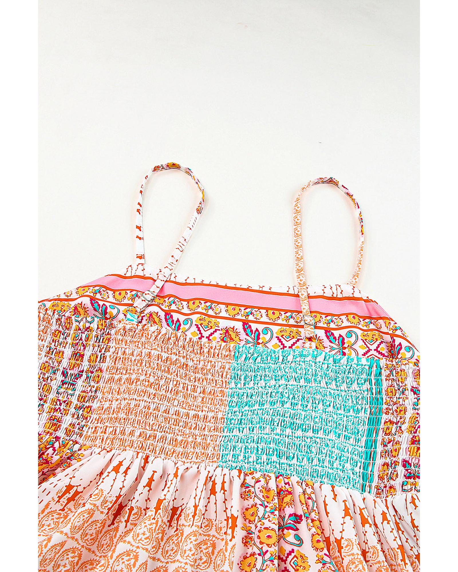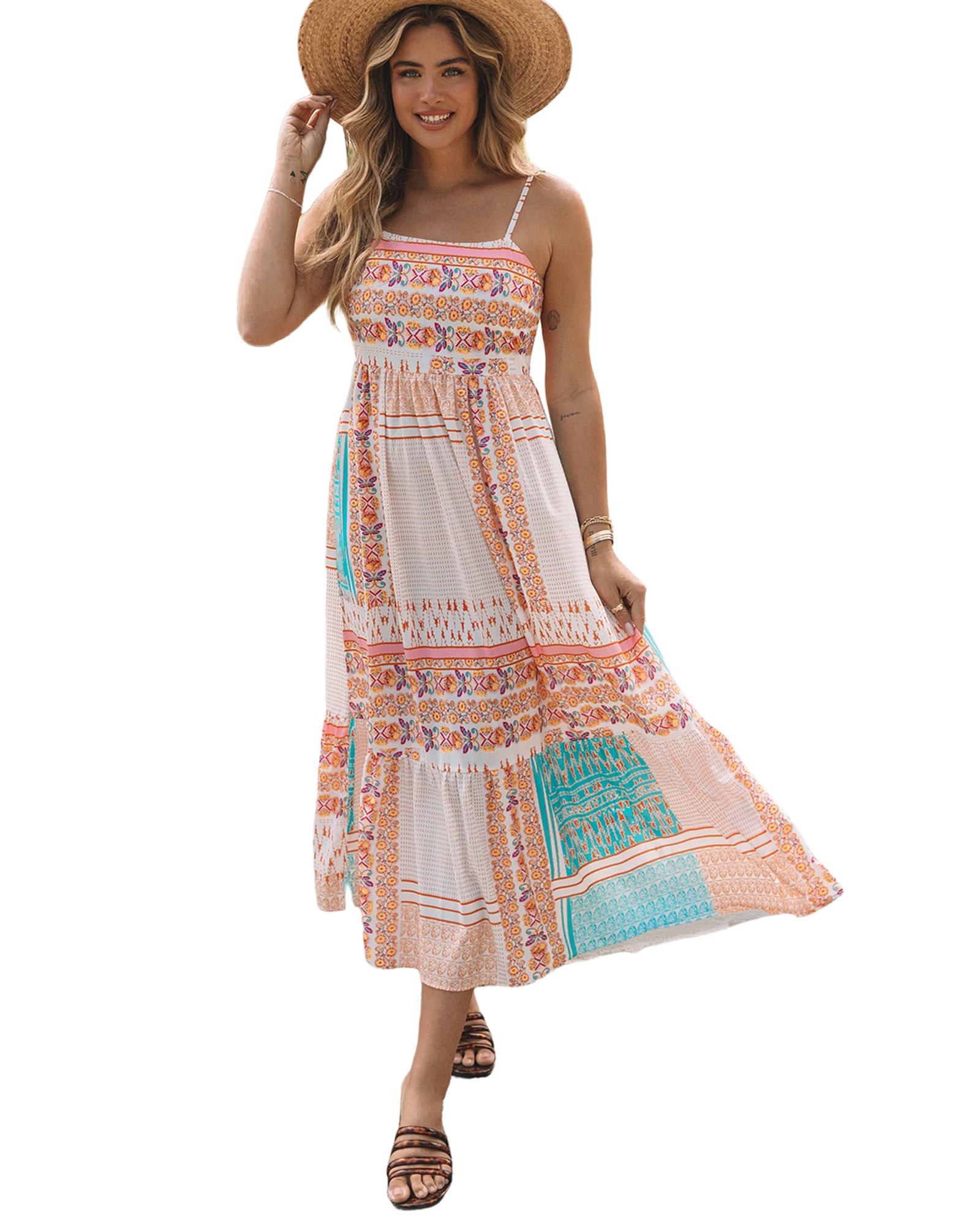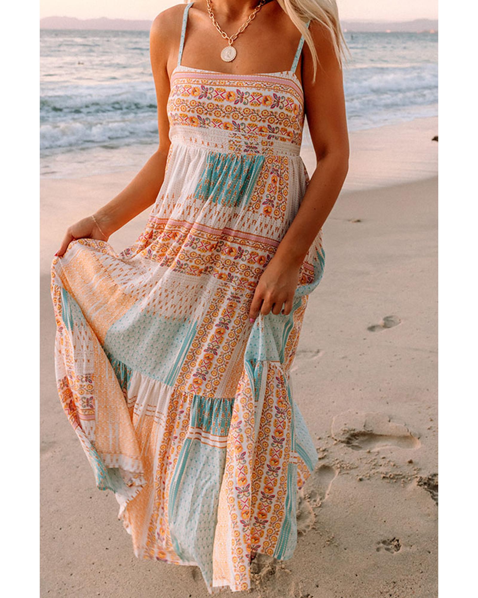 Multicolor Boho Patchwork Print Square Neck Sundress – XL
