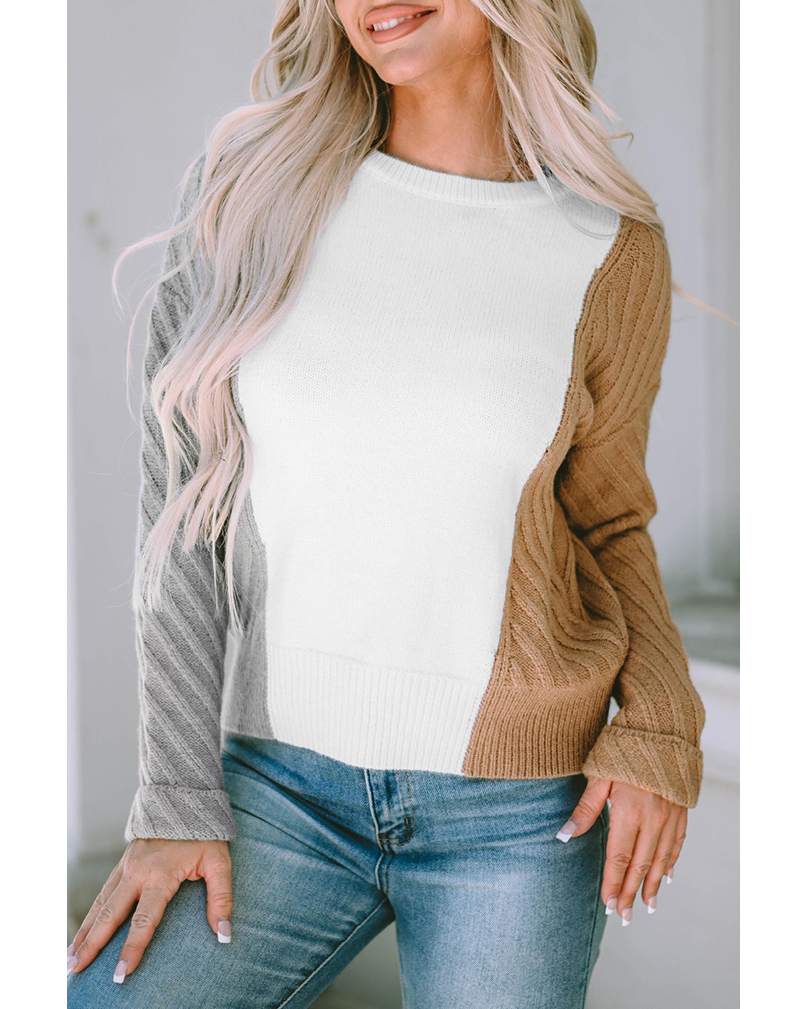Multicolor Colorblock Textured Drop Shoulder Sweater – S