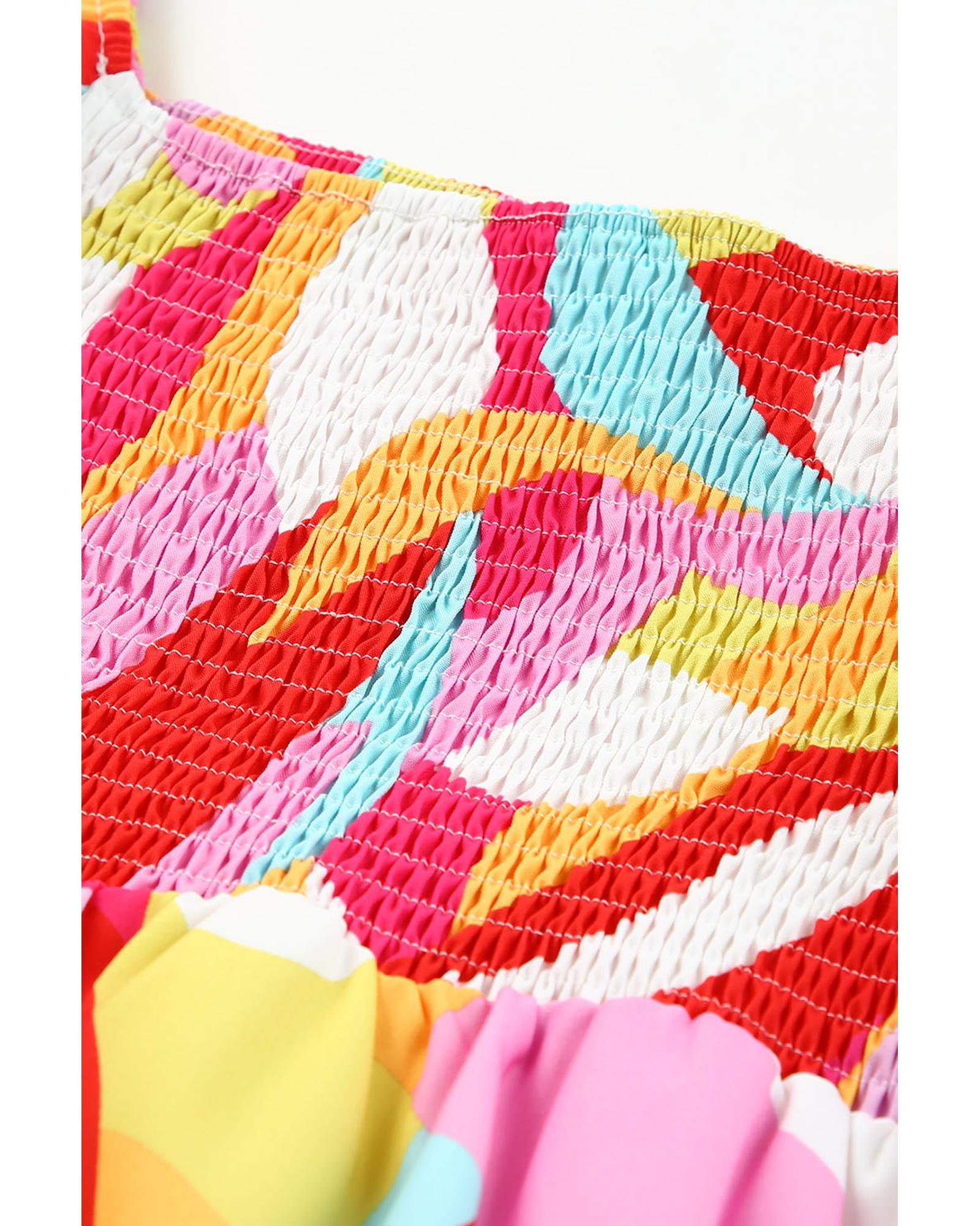 Multicolor Geometric Print Smocked Babydoll Mini Dress – L