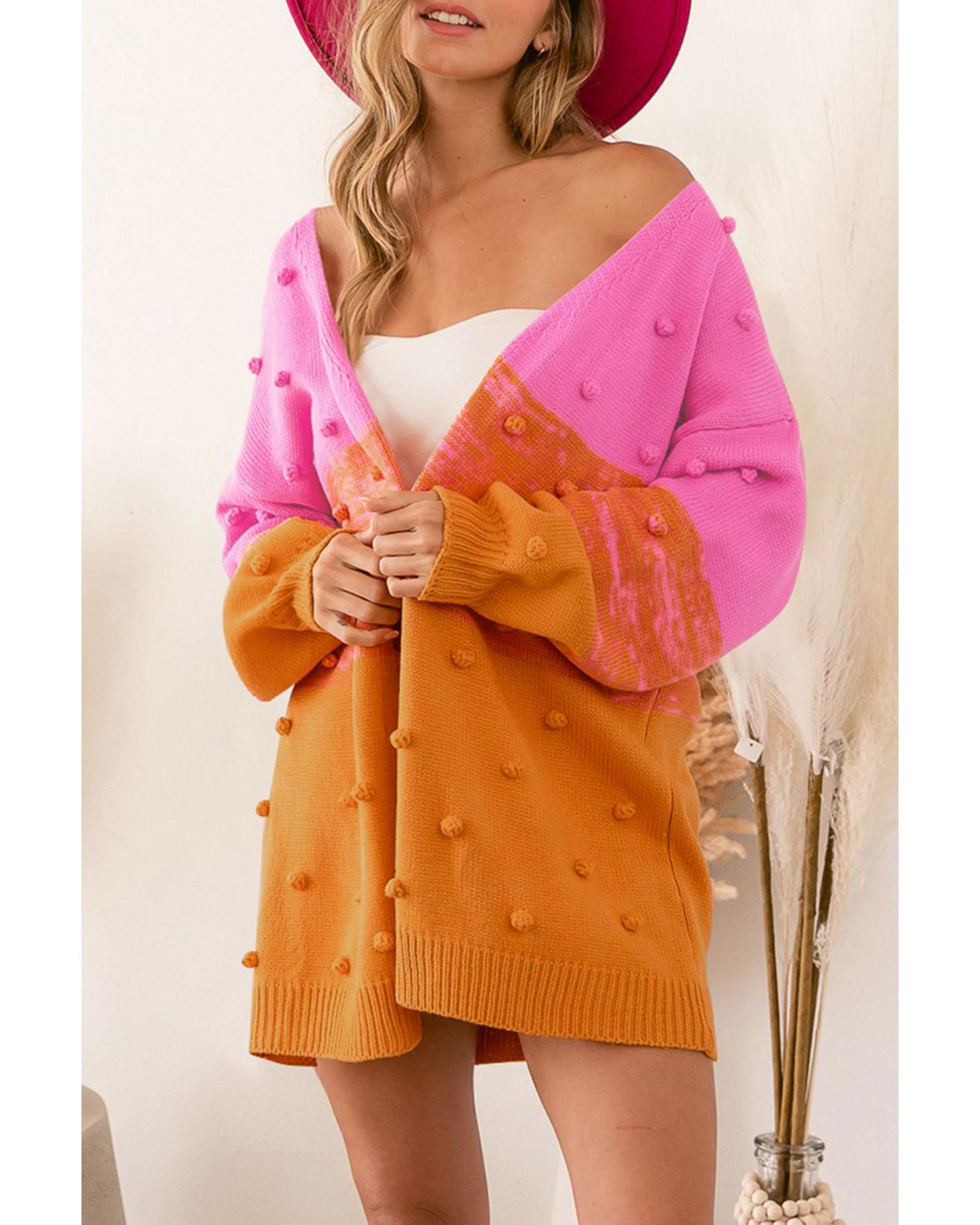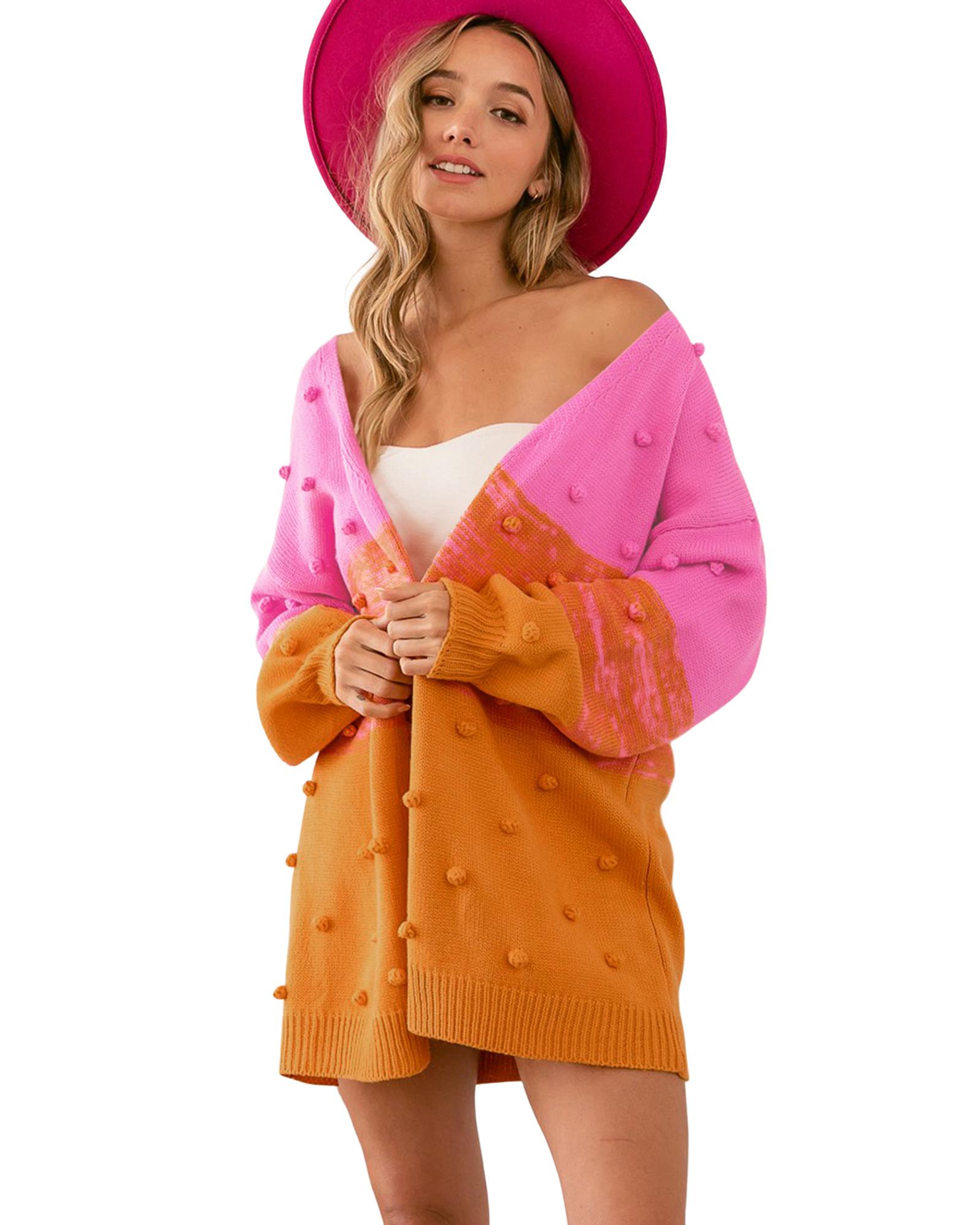 Multicolor Pompom Color Block Open Front Cardigan – XL