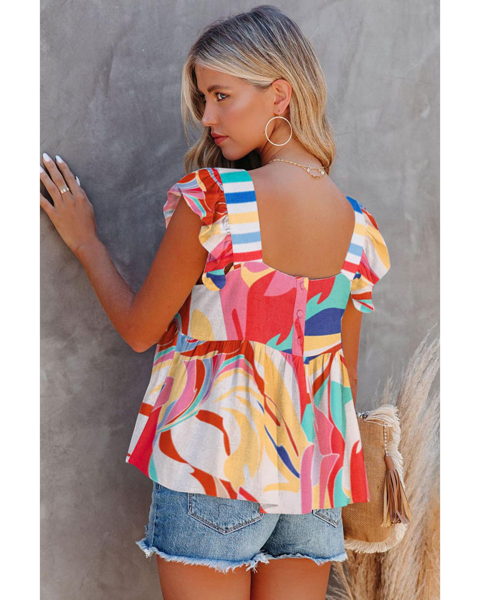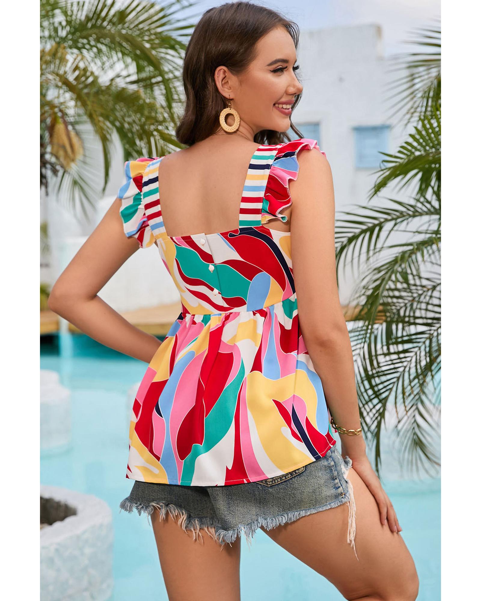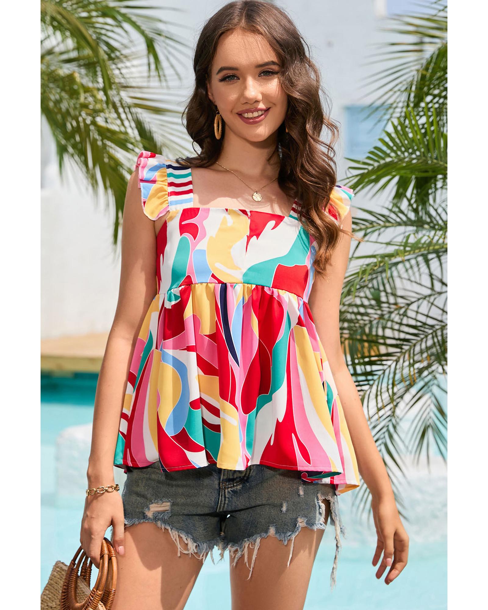 - Multicolor Square Neck Abstract Print Tank Top