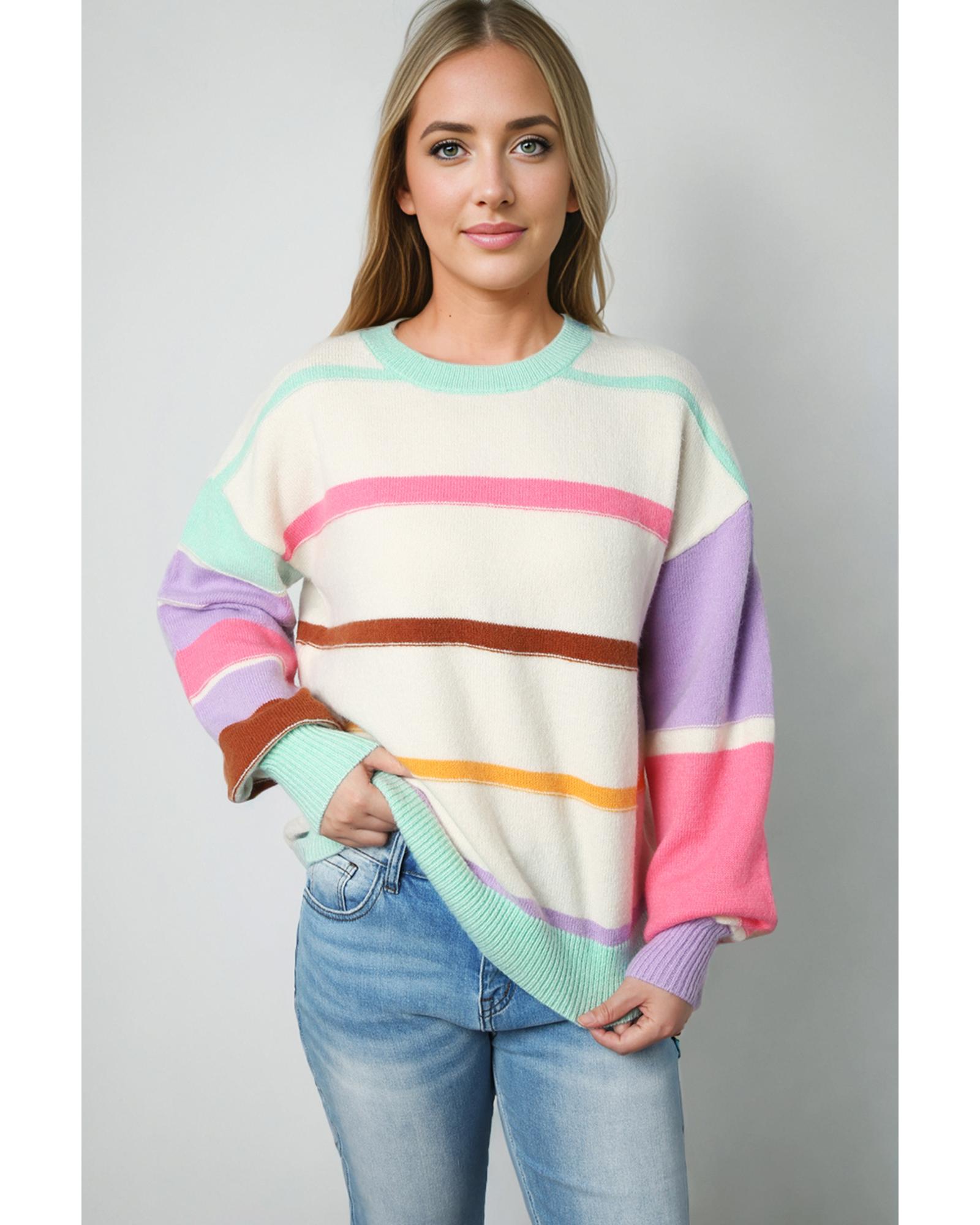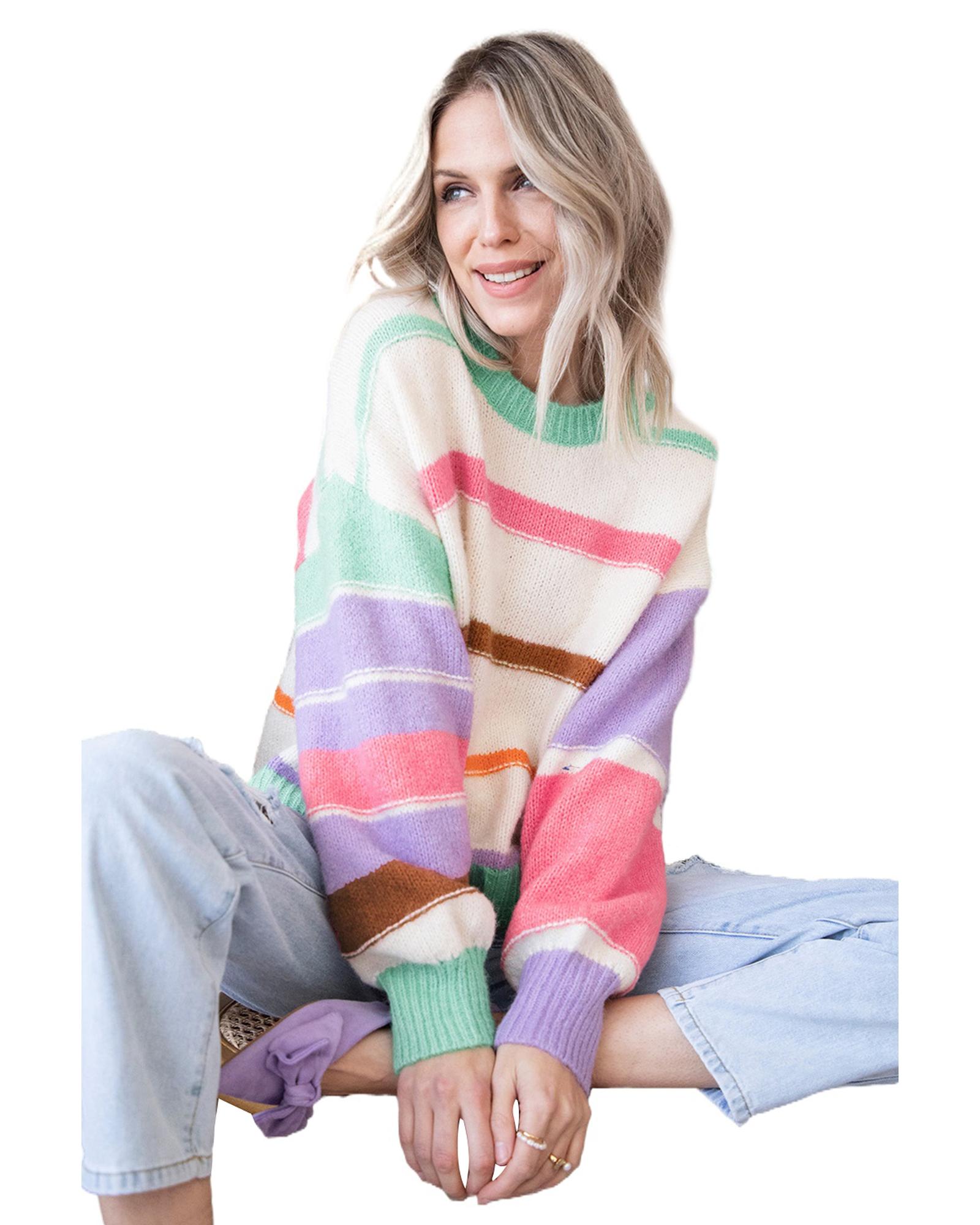 Multicolor Striped Colorblock Drop Shoulder Sweater – L