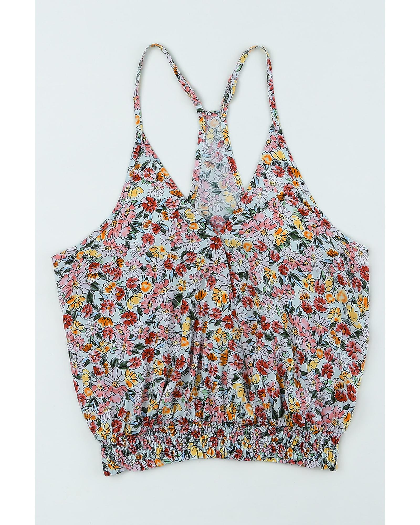 Multicolor Wrapped V Neck Floral Tank Crop Top – XL