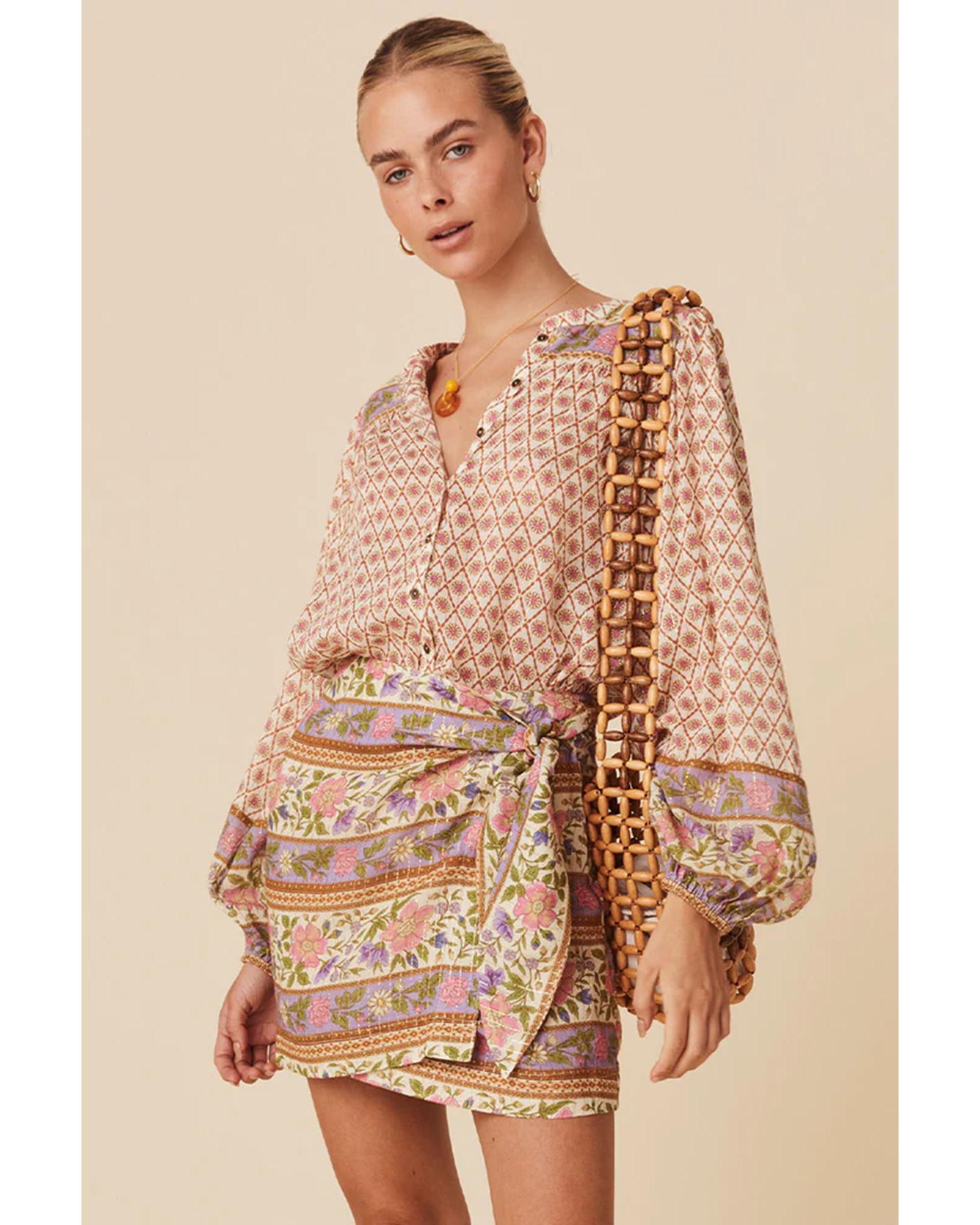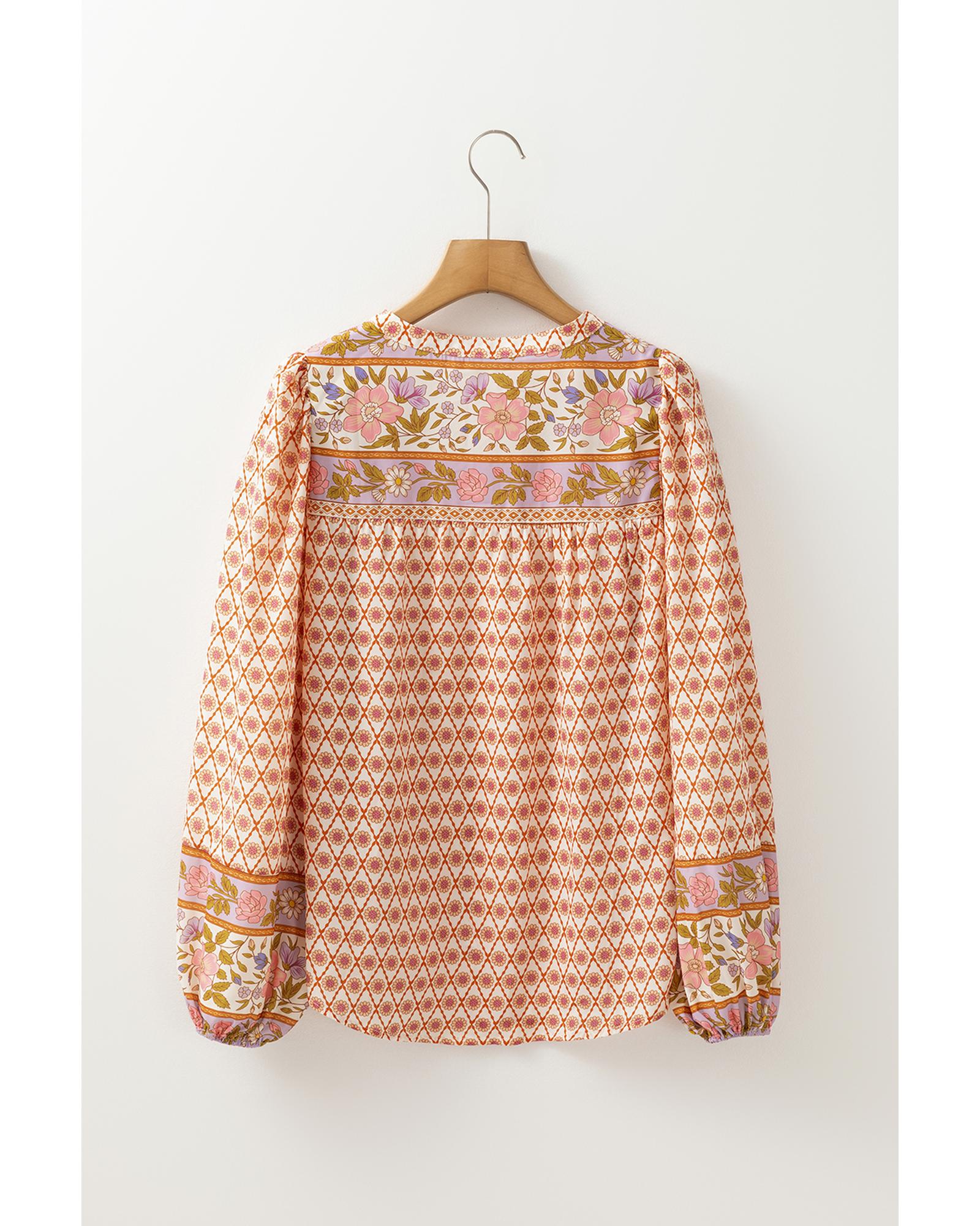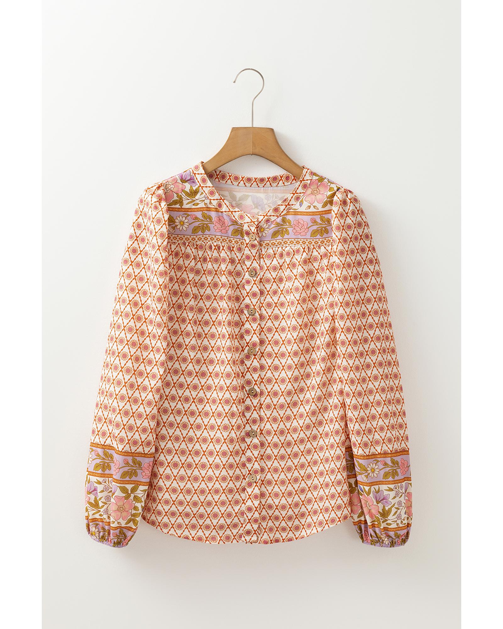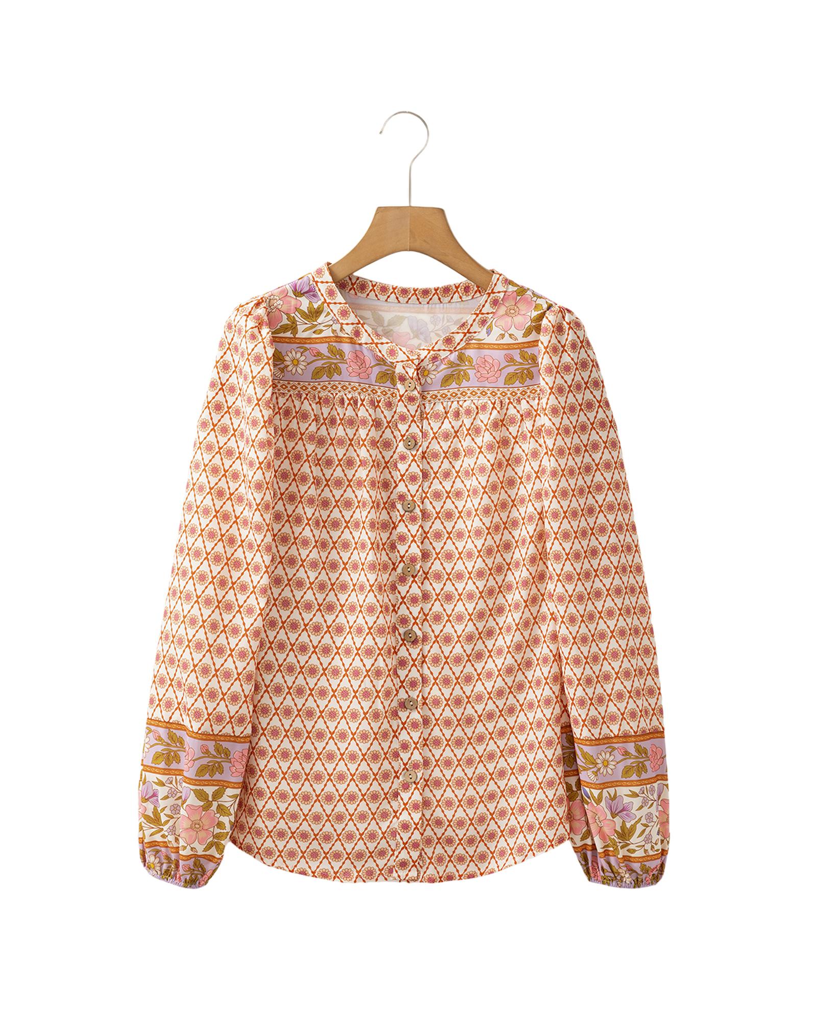 Multicolour Boho Floral Mixed Print Puff Sleeve Shirt – L