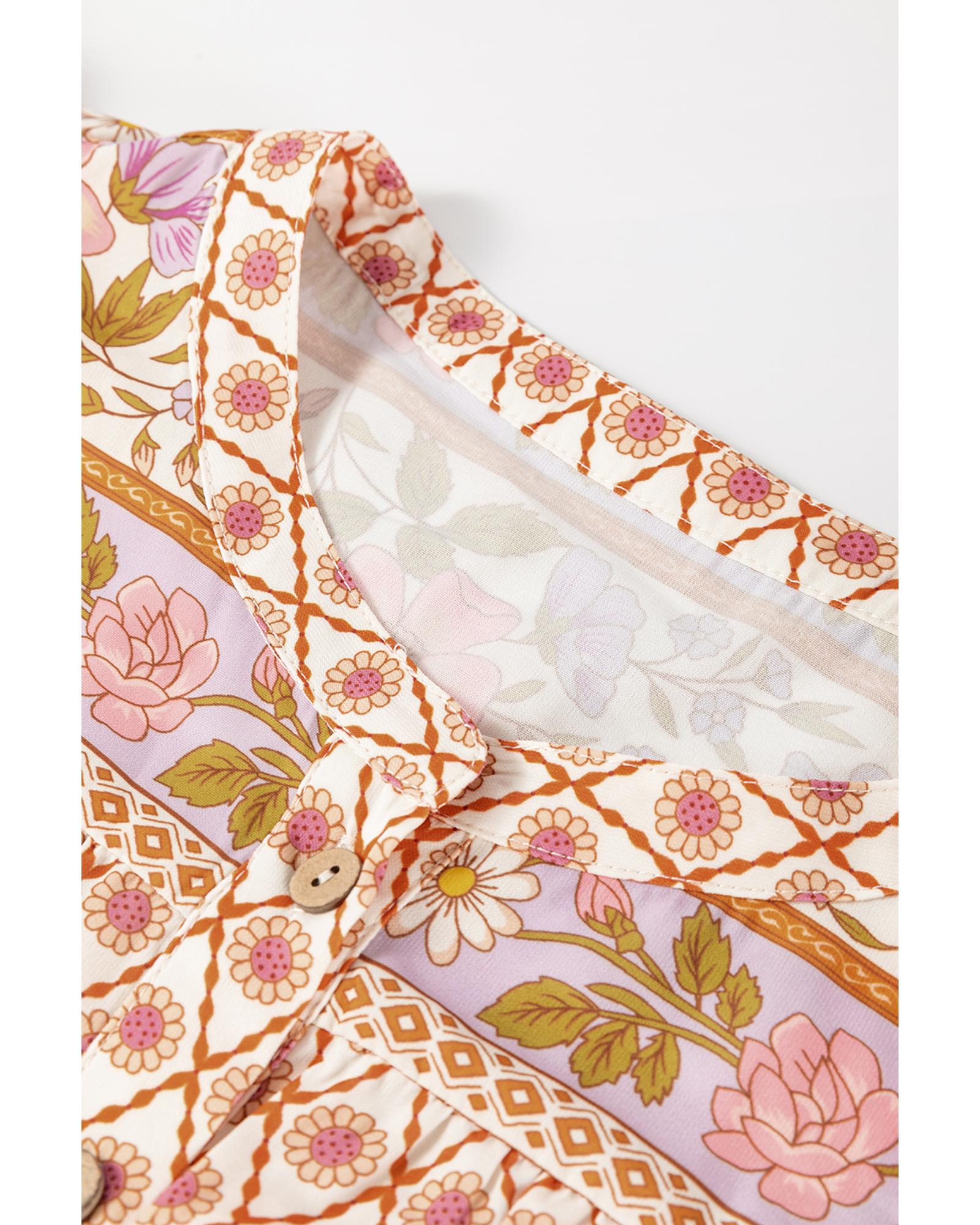Multicolour Boho Floral Mixed Print Puff Sleeve Shirt – M